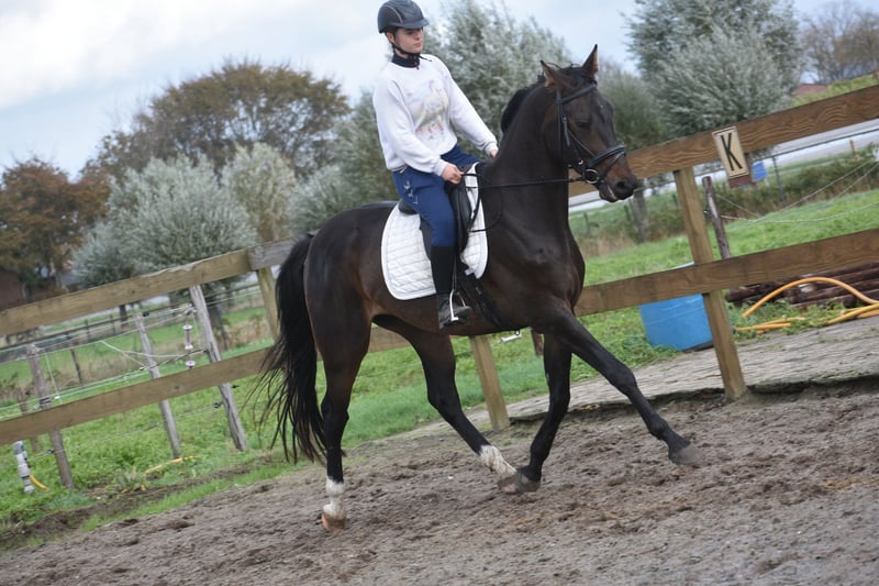 Ontmoet Valesco van de Melane Rechtstreeks van de fokker mochten wij hem overnemen, samen met stalgenoot Voltaire van de Melane. Wat een parel! Een prachtige, zwartbruine 4,5 -jarige ruin van ca. 1.68m, met een aansprekende afstamming: Lavillion x Akribori x Ulft. Een perfecte combi voor zowel dressuur als springen. . Valesco is werkelijk een schat van een paard. Op stal trekt hij met zijn charmante uitstraling alle aandacht en geniet hij volop van een knuffel. Onder het zadel laat hij hier zijn werklust en nuchtere karakter zien. Hij is erg fijn te rijden en biedt zijn ruiter een fijn gevoel in de hand. Hij is röntgenologisch en klinisch goedgekeurd, zowel de benen als rug en hals. Met zijn talent en veelzijdigheid kun je met Valesco meerdere kanten op. Een paard met een mooie toekomst , geschikt voor zowel sport ( dressuur+ springen) als recreatie. Hij is hier en voorheen goed verkeers,- en trailermak. Heel erg sociaal. Vrij van ( stal) gebreken. Valesco is kerngezond en kan enorm goed bewegen, met veel cadans , balans en ruimte. 9750,- incl. merkzadel en hoofdstel compleet.`