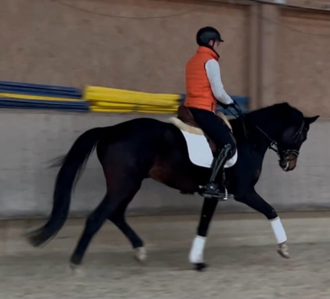 Valencio ist ein sehr ausgeglichener, braver fünfjähriger Wallach (geboren im Februar 2021), der alle, den ihn kennen, um seinen kleinen Finger wickelt. Abstammung: Vaterland (Vitalis) × Governor (Totilas/Bretton Woods). Er ist seit September regelmäßig unter dem Sattel und erweist sich als sehr intelligent und lernwillig. Valencio ist äußerst unerschrocken: Traktoren, große und ungewöhnliche Gegenstände, Hunde oder Wasser machen ihm nichts aus. Er ist sehr brav im Umgang, sowohl beim Führen als auch beim Hufschmied, Verladen und Hängerfahren. Neben dem engen Kontakt zum Menschen genießt er auch das Zusammensein mit Artgenossen und zeigt dabei ein ausgeprägtes, freundliches Sozialverhalten. Valencio überzeugt nicht nur durch seine gelassene Art, sondern auch durch seine sehr guten drei Grundgangarten. Er zeigt viel Potenzial für die höheren Klassen im Dressursport und verfügt zudem über ein gutes Springvermögen. Aufgrund seiner Unerschrockenheit wäre auch die Vielseitigkeit eine interessante Perspektive für ihn. Da es sich um ein noch junges Pferd handelt, das sich erst am Anfang seiner Ausbildung befindet, richtet sich Valencio an Reiter mit entsprechender Erfahrung, die ein talentiertes Nachwuchspferd weiter fördern und ausbilden möchten. Für Reitanfänger ist er daher nicht geeignet. Bei Interesse können Reit- und Freispringvideos zur Verfügung gestellt werden.