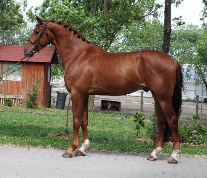 Cavallo di 5 anni stallone castrone 172 cm padre: Gancio van t’ Smisveld Z madre: Diamant de Semilly Questo giovane stallone molto attraente rappresenta la combinazione ideale di qualità, temperamento eccellente e athleticism. Con il suo tipo moderno e un aspetto espressivo, si distingue immediatamente come un cavallo con grande potenziale. È già alto 1,72 m e pronto a fare il prossimo passo con sicurezza. Coraggioso, cauto e molto maneggevole, unisce il suo talento naturale per il salto ostacoli a un atteggiamento disposto, rendendo particolarmente piacevole il suo ulteriore addestramento. La sua rapida capacità di apprendimento e il carattere equilibrato lo rendono un partner ideale per giovani cavalieri, dilettanti ambiziosi o anche programmi professionali. Grazie al suo pedigree, al talento e a un ottimo livello di base, questo cavallo offre ottime opportunità a chi desidera sviluppare sistematicamente un giovane di alta qualità fino a un livello superiore. Il cavallo è stato recentemente sottoposto a radiografie. - Spediamo in tutto il mondo. - Sono possibili anche scambi.