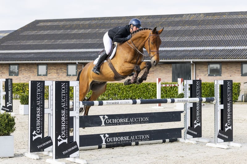 Vanthago is a tall, long-lined sport horse with impressive scope, balance, and a very gentle temperament. He is very easy to ride and immediately instills confidence in his rider. He has a good canter, both on the flat and over fences, with plenty of balance. Despite his size, he is surprisingly light-footed and quick off the ground. Over fences, he demonstrates scope and good technique. He handles everything very well and shows a willing attitude. Although still green for his age and with experience up to 1.10m, he clearly possesses the qualities needed for higher levels of competition. This is a typical horse that, with the right training, can develop into a horse suitable for larger courses. A very nice amateur prospect with significant potential for the future. Sire Qanthago van ’t Huka competes at 1.40m and is a son of Kannan (1.60m), one of the most influential sires for scope and attitude. Dam Rappe Lola van ’t Huka is a daughter of H&M Chilli Willi (1.60m) and comes from a very strong international performance family. The damline is highly proven and has produced top-level horses such as: - Edison (1.60m) - Tibaldi (1.60m) - Bonte Lola (1.55m) - Temple Marple (1.50m) - Monte Carlos (1.45m) - Koning Boudewijn (1.45m) - Multiple horses competing at 1.40m–1.60m levels A family with a proven record at the highest levels of show jumping.