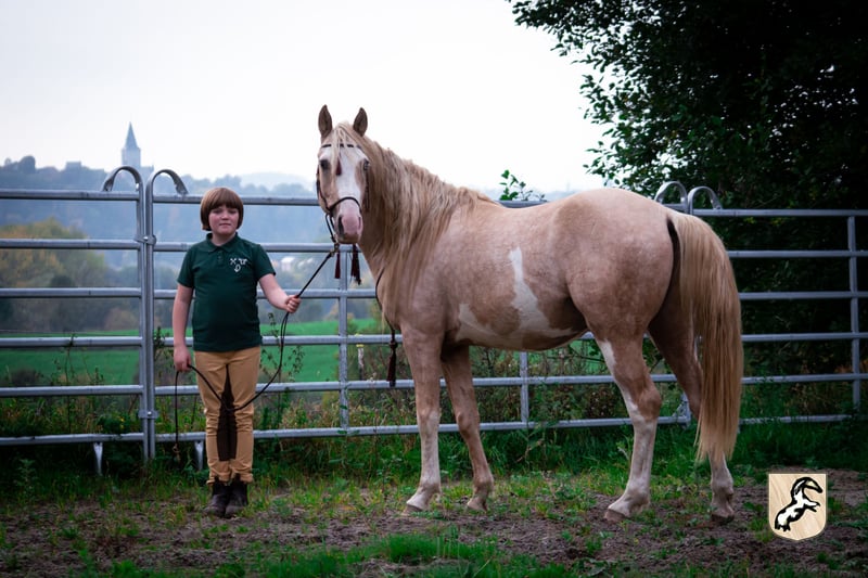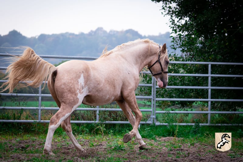 Mansour nous a beaucoup convaincus dans l'élevage, surtout par son caractère insouciant et amical. Comme tous les descendants de Practissse, il porte fortement l'empreinte de ses origines berbères, tant à l'extérieur qu'au niveau du caractère. Comme nous avons perdu sa grand-mère Playa lors de l'exportation en quarantaine, nous n'avons tout simplement pas pu résister à ce jeune homme particulier ! Enfants, chats, oiseaux et chevaux en caoutchouc - en principe, il n'y a rien que Mansour ne veuille pas examiner avec amour. Malheureusement, au cours de son deuxième été, il s'avère qu'il sera plus grand que nous ne le pensions. C'est pourquoi nous ne l'élèverons pas en tant que candidat-étalon. Nous aimerions trouver une place pour ce cheval très gentil et toujours ouvert, où il pourra rester en compagnie de chevaux et développer son attachement naturel à tout - avec ou sans fourrure ;) - peut approfondir. Malgré ses longues jambes dues à sa croissance, il se montre agile, bien équilibré et fait demi-tour sur une soucoupe lorsque cela est nécessaire. Un futur propriétaire devrait donc posséder suffisamment de soucoupes et, en plus d'être sérieux, avoir un goût sincère pour le jeu. Mansour recherche ses câlins et se laisse faire en toute confiance. Sous surveillance, nous pouvons également l'imaginer pour des adolescents ayant de l'expérience avec les chevaux ou pour des enfants plus jeunes. Il serait certainement aussi un bon cheval de famille - à condition qu'il ait aussi des compagnons de jeu équins pour s'adonner suffisamment à son plaisir de courir. Mansour se fera un plaisir de répondre personnellement à vos questions ;)