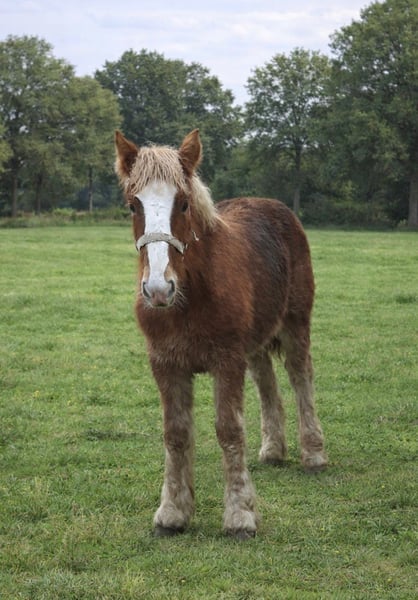 Zu verkaufen: Stutfohlen Boulonnais x Belgisches Kaltblut (Kreuzung) Geboren am 1. August 2025 Fuchsfarben Für weitere Informationen rufen Sie bitte an. 06 13359085