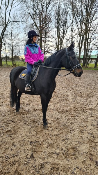 Mare for leisure riding. Well-behaved in the field. But can also do dressage and jumps.
