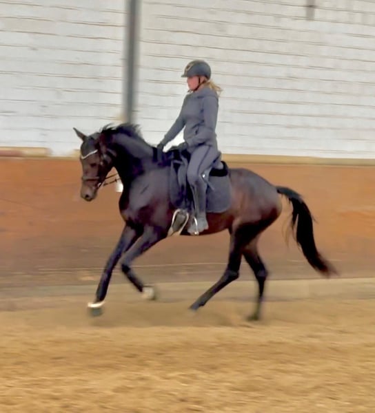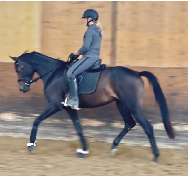 GRACE ist eine auffallend typvolle Dressurnachwuchsstute in edler Aufmachung. Im Pedigree vereint sich bedeutendes Leistungsblut der Vererber Galaxy/Grand Galaxy Win T und dem Hengst Quadroneur/Quaterback x Samba Hit 1. Sie wurde mit 26 Pkt Championatsfohlen und war für das Fohlenchampionat des Pferdezucht- verband Brandenburg - Anhalt nominiert. Wohlbehütet wuchs sie in einer kleinen Gruppe mit gleichaltrigen Stuten im Offenstall auf. Das schöne Nachwuchstalent mit vielversprechender Perspektive verfügt über ein ausdrucksstarkes Gangwerk, das es mit Sachverstand und der gebotenen Rücksicht auf Alter und körperliche Entwicklung des Pferdes schonend zu entwickeln gilt. Was GRACE besonders auszeichnet ist ihr ausgeglichenes, freundliches, sowohl Ihren Artgenossen, als auch dem Menschen zugewandtes ein sehr aufgeschlossenes Wesen. AUSBILDUNGSSTAND: GRACE wurde im Mai diesen Jahres behutsam angeritten. Die Ausbildung der jungen Stute erfolgt entwicklungsorientiert und altersgerecht. Entsprechend Ihrem Ausbildungs- und Entwicklungsstand liegt der Schwerpunkt z.Zt auf Takt, Balance, Losgelassenheit und Anlehnung. Hierbei liegt unser Fokus auf der nachhaltigen, altersgerechten und schonenden Ausbildung zum gesunden und leistungsfähigen Sportpartner. TÜV: Am 14.08.2025 wurde eine umfassende röntgenologische Untersuchung ( inkl. Rücken ) und Zahnkontrolle durchgeführt. Alle Untersuchungsergebnisse sind ohne Befund ! Die Stute ist gut entwickelt und hat keinerlei gesundheitliche oder körperliche Beein- trächtigungen. Weitere Bilder und Videos folgen in Kürze !