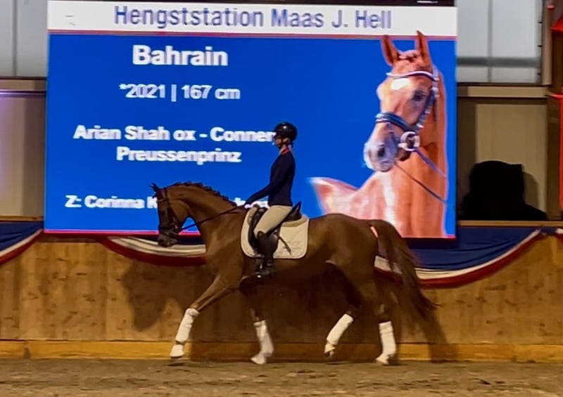 Camar Bahrain, one of the darlings of the 61st Trakehner Stallion Market. Licensed and awarded the prize of the Chamber of Agriculture for the best in S.-H. bred stallion. In addition to his beautiful type, he was praised for his good basic gaits and his friendly, honest nature. At the time, his father was the celebrated licensing winner of the VZAP in Luhmühlen and in 2019 National Reserve Champion in Aachen. He has already produced a daughter in the GP program of the Trakehner Association with Camar Qinea ox and a stallion performance test winner with Camar Qbinec ox. Bahrain's dam Barani is the premium mare of the federation from the best dressage lines with good SLP and placings in RPf and DPf A. She has already produced an auction foal with Boulevard v. Gabon. Camar Bahrain will be set up for his first breeding season at the stallion station Geling in Gowens, please contact Mr. Geling- www.hengststation-geling.de