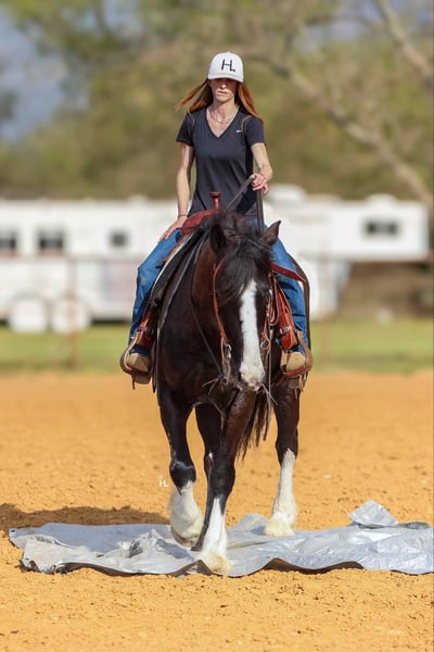 ONLINE AUCTION Place your bids at www.PlatinumEquineAuction.com Starting Bid $3500 Auction ends April 13th, 2025 Need a new saddle? Check out White Rock Saddles on our website or Facebook! Leroy is what every draft cross lovers dreams are made of. This 8yr old, 16hh, 1350lbs, Quarter Horse/Draftcross Gelding that has the puppy dog demeanor of a draft that everyone adores along with the rock solid conformation but has the ability and versatility to perform like a quarter horse half his size if needed and has the resume to prove it. Dad can use him to do ranch work, mom can ride him out on the trails or take him over fences, and the kids can play around him safely and dote on him to their hearts content. Leroy is truly a horse the whole family can and will enjoy. Leroy was bred and raised in Canada and then used to do ranch work in Canada, Montana, and here in Texas. He’s has a great work ethic and there’s no job too big for him. From doctoring in the pasture to dragging calves to the branding fire, Leroy has done it all and is ready for any job you need him to do. With his ranch work history especially in the mountains, it’s no surprise that Leroy is one of the most surefooted horses to grace our program. From mountainous terrain to the plains, he will safely get you to do your destination every time. Leroy crosses creeks and bridges with ease, navigates through thick brush safely, is careful and strategic about his foot placement when going up and down steep terrain, has no qualms when it comes to vehicle or pedestrian traffic, and if you’re on a State Trail way you’re sure to get compliments on him from passerby’s. In the arena, Leroy shines just as bright. Whether you’re riding him under english tack or western, Leroy is a smooth and fancy ride that attracts attention. He is one handed broke, side passes both directions, picks up the correct leads, can turn around slow and correct, and is tuned in to not only your seat, legs, and hands, but your voice as well. A simple sit on your pockets with a bump of the reins and an “easy” can have him going around at a pace slower than some pleasure horses and a bump with the magic “whoah” will have him stopping on a dime. Leroy is comfortable to ride in all gaits thanks to his natural cadence accentuated by his training. He has a lovely ground covering walk, a fantastic jog that can be bumped up to a comfortable working trot, as well as a lope that makes 90% of other horses his size 100% jealous. We truly don’t believe there is anything Leroy can’t do as he’s exceeded every expectation while in our program. He will carry a flag, has been schooled successfully up to 3’6” in both show jumping and cross country with a few prelim and intermediates thrown in, goes around lovely on the flat under english tack, happily keeps a toddler safe while riding double with a parent as well stepping up to the plate to be a huge blank canvas for said toddler’s finger painting. Leroy isn’t just a ranch horse, he’s a horse the whole family can enjoy doing so many different things with thanks to his mind and versatility. When it comes to Leroy’s daily care and handling, he is an absolute gentleman. Leroy has been easy to catch each time we walk out to get him and can typically be heard before seen with his greeting nicker. From grooming to tacking up, Leroy will remain like a patient statue (bonus points, you don’t need any specialty draft tack for him). He’ll let you take your time mounting and unmounting, and you can also safely use a mounting block if needed. Leroy is good to bathe and clip as well. The first time your farrier lays eyes on Leroy he might not be your biggest fan, but after working on Leroy, whether it’s just a trim or a full set, your farrier is sure to like him too. If you’re often trailering to different places, you can rest easy knowing Leroy will always load into your trailer and hauls without any fuss. Leroy has had no previous health or lameness issues, requires no special care or maintenance, is UTD on all routine care, and is ready to become the horse you’ve always wanted to own. We invite you to come meet this exceptional gelding at our place in Weatherford, TX. PPEs welcomed and we can help assist setting up hauling to wherever you call home. For any questions and to talk about if Leroy is the right fit for you, feel reach to out to H Spur Performance & Versatility Horses Sarah at 817-366-6123. To see his other 20+ videos and additional pictures, please visit his page on our website www.hspurhorses.com/leroy. ONLINE AUCTION Place your bids at www.PlatinumEquineAuction.com Starting Bid $3500 Auction ends April 13th, 2025 Need a new saddle? Check out White Rock Saddles on our website or Facebook!