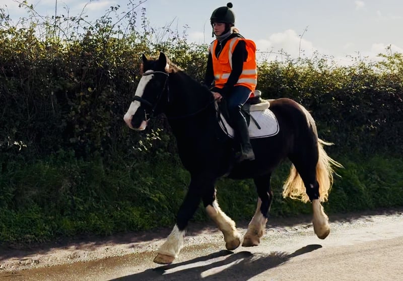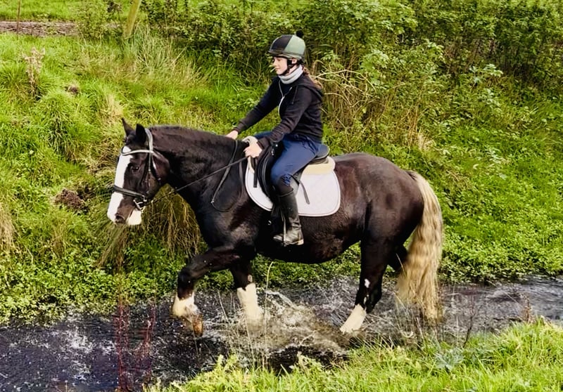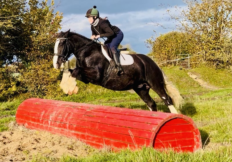 Oreo, ein auffälliger, bald 5-jähriger Cob-Wallach mit einem Stockmaß von ca. 1,62 m. Oreo ist ein wirklich beeindruckendes Pferd mit schöner, ausgewogener Konformation und einer außergewöhnlich eleganten Erscheinung. Sein wunderschöner, weißer Schweif verleiht ihm ein einzigartiges Aussehen, das überall die Blicke auf sich zieht – er ist eines dieser Pferde, das man einfach bemerkt, wegen seiner Ausstrahlung und seines Charmes. Mit seinen markanten Abzeichen und seinem harmonischen Körperbau ist Oreo das perfekte Beispiel für einen gut gebauten Cob – er vereint Kraft, Balance und Qualität in einem beeindruckenden Gesamtpaket. Oreo hat ein wundervolles Temperament und ist ein echter Schatz im Umgang. Er ist freundlich, gutmütig und immer bemüht, seinem Reiter zu gefallen – ein idealer Partner für Reiter unterschiedlicher Erfahrungsstufen. Hier wird er regelmäßig von Reitschülern geritten und nimmt alles gelassen, zeigt Geduld und einen ruhigen, vernünftigen Charakter, der sofort Vertrauen schafft. Er wird im einfach gebrochenen Gebiss geritten, ist leicht in der Hand und reagiert fein auf die Hilfen – ein komfortables, vertrauensförderndes Reitgefühl bei jedem Ritt. Im Gelände ist Oreo ein Traum – ob allein oder in der Gruppe, er ist verkehrssicher und gelassen. Er kennt landwirtschaftliche Maschinen und das Leben auf dem Land bestens, was ihn zu einer hervorragenden Wahl für alle macht, die entspannte Ausritte durch Wege, Felder oder offenes Gelände genießen möchten. Oreo ist außerdem ein unkompliziertes Pferd für die Jagd – vernünftig im offenen Gelände, höflich in der Gruppe und stets konzentriert bei der Arbeit. Oreo wurde auf dem Platz, über Sprünge und im Gelände sorgfältig gearbeitet. Er ist ehrlich und mutig am Sprung, hat einen guten, natürlichen Rhythmus und springt hier bereits sicher bis 90 cm. Mit seinen drei ausgewogenen, bequemen Grundgangarten und seiner motivierten, positiven Einstellung zeigt er großes Potenzial als vielseitiges Allroundpferd. Er ist genau der Typ Cob, der für alles zu haben ist – vom Ausreiten und Jagen bis zu Reitvereinsaktivitäten oder einfach schönen Tagen im Gelände. Er ist in jeder Hinsicht unkompliziert im Handling – brav beim Schmied, Verladen, Fangen, Reiten und im Straßenverkehr. Oreo hat keine Stallmängel und ist offen für jede tierärztliche Untersuchung. Durch sein ruhiges, anpassungsfähiges Wesen würde er in viele verschiedene Zuhause passen: Er wäre ein fantastisches Mutter-Tochter-Pferd, eine tolle Ergänzung für eine Reitschule oder ein verlässlicher, fröhlicher Freizeitpartner für jemanden, der ein unkompliziertes, angenehmes Pferd sucht. Der Preis beinhaltet die Lieferung zu Ihrem Hof überall im Vereinigten Königreich, und wir bieten einen Umtausch an, falls Sie nicht vollständig zufrieden sind. Scrollen Sie nach unten, um sein Video anzusehen und selbst zu sehen, was für ein liebenswertes und ehrliches Pferd Oreo ist. Für weitere Informationen oder zur Vereinbarung eines Besichtigungstermins rufen Sie mich gerne jederzeit unter 00353 868077626 an oder schreiben Sie eine E-Mail an gertytynan@gmail.com. Oreo ist das komplette Paket – hübsch, freundlich und ehrlich – ein wunderschön gebauter Cob, der für jemanden ein wirklich wunderbarer Allround-Partner sein wird.