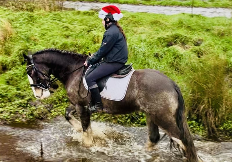 🌟 Nearly 5-year-old Chocolate Dun Cob gelding – "Charles" – An Eye-Catching, Honest Gentleman 🌟 Rare color | Safe, friendly & versatile | Delivery to the United Kingdom included Meet Charles, a 5-year-old (growing) Chocolate Dun Cob gelding with a presence that turns heads everywhere. His rare color, striking markings, and beautiful white feathers make him a real eye-catcher—impressive yet incredibly honest. 🤎 A Temperament You Can Trust Charles epitomizes friendliness, kindness, and patience. He has excellent manners and a wonderfully balanced temperament, making him the perfect partner for: • Reining beginners • Riding schools • Leisure and trail riders • Mother-daughter horses He has been ridden here by beginners and always remains calm, reliable, and forgiving. Charles is the type of horse who looks after his rider—regardless of their confidence level. 💫 Rideability & Ability With a soft contact on the bit, three balanced, straight basic gaits, and an overall light, pleasant way of going, Charles is a joy both in the arena and over jumps. He has jumped up to 90 cm here and displays an honest, straightforward attitude with plenty of potential for those who enjoy: • Showing as a cob • Light sport riding • Participating in riding club activities • Having fun and enjoying confident riding 🌿 Calm, sensible & secure Charles is just as reliable on the ground as under saddle. He is: • Excellent in the field, alone or in company • Traffic-safe in all situations • Easy to shoe, load, catch, and handle overall • Gentle and friendly in the stable – a real favorite He has no stable vices, is open to any pre-purchase examination, and is ready to make someone happy with his calm, loving nature. 🚚 Price includes delivery to your yard in the United Kingdom 🔄 Exchange possible if you're not satisfied 🎥 Watch his video! 📞 Phone: +353 86 807 7626 📧 Email: gertytynan@gmail.com