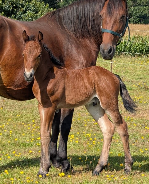 Twinstar Clover Mooie jonge hengst, die de beste vriend van de toekomst kan worden in de vrijetijdsport en als allrounder. Hij heeft veel mogelijkheden. Hij beheerst de basis van jonge paarden en wordt regelmatig door de hoefsmid verzorgd. Hij groeit op met leeftijdsgenootjes op de weiden van het stamboek. De derde foto is een actueel beeld; de donkerbruine hengst is zijn vader, Coolcom JJ. Voor meer informatie graag via WhatsApp/telefoon: 0049 160 4052656