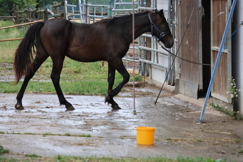 We are offering a beautiful Connemara mix stallion for sale that was born in 2024. This dark bay beauty not only impresses with his elegant appearance, but also with his friendly nature and versatility. With a height of 150 cm, he is ideal for the leisure rider looking for a reliable and good-natured partner. The young stallion is eager to learn and is ready to explore the world with his future owner. If you are looking for a horse that cuts a fine figure both in the field and on the arena, then this Connemara stallion is just right for you. Please contact us for further information and to arrange a viewing.