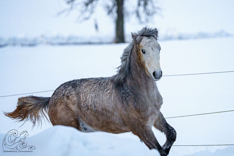 Oceanhearts Ventura is looking for a new home. He loves to please, adores people, and prefers to be right in the middle of the action rather than on the sidelines. Ventura was born and raised within the herd. He has a buddy with whom he enjoys playing and a caring aunt in his current weaning group. He is vaccinated, regularly wormed, chipped, and has good papers from ZfdP. His mother is Muckrim Josie by Westside Mirah, a mare, and his father is Birdmountain van Halen. He is expected to grow into a large, strong pony, likely surpassing pony size. For weaning, Ventura could stay with his buddy, but he will certainly settle quickly into a different group of foals. He is familiar with the basic foal training and always enjoys human contact. He even likes the veterinarian during vaccinations...