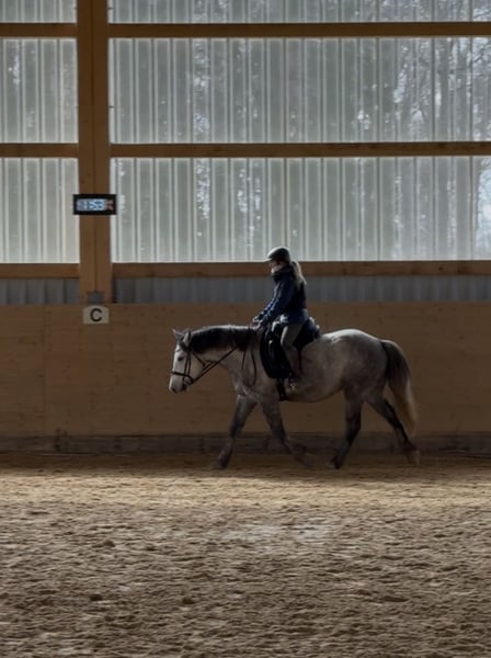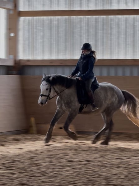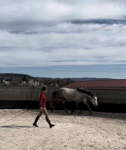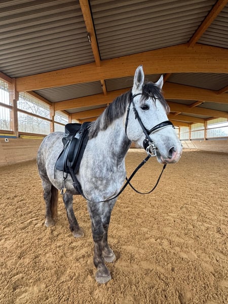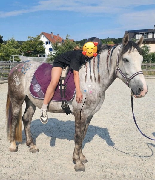 Zum Verkauf steht Dino, ein 5 jähriger Pony Wallach mit einer Größe von 1,53 m.☀️ Er hat ein gesundes und robustes Fundament, lässt sich in der Halle so wie im Gelände brav in allen GGA reiten und zeigt sich dabei unerschrocken. In der Bodenarbeit zeigte er als er zu uns kam zunächst Abwehrverhalten auf Druck, ist aber mittlerweile sehr fein an den Hilfen und reagiert super auf Stimmkomandos und hat sogar Spaß an den Freiarbeit entwickelt! Er läuft Barhuf und im Gelände vorne mit Hufschuhen. Verladen und Anhänger fahren sind für ihn kein Problem. Wir wünschen ihm ein Zuhause, in welches Jungpferdeerfahrung hat und individuell auf ihn eingehen kann. Offenstallhaltung erwünscht, er kennt aber auch die Box mit täglichem Weidegang in der Herde