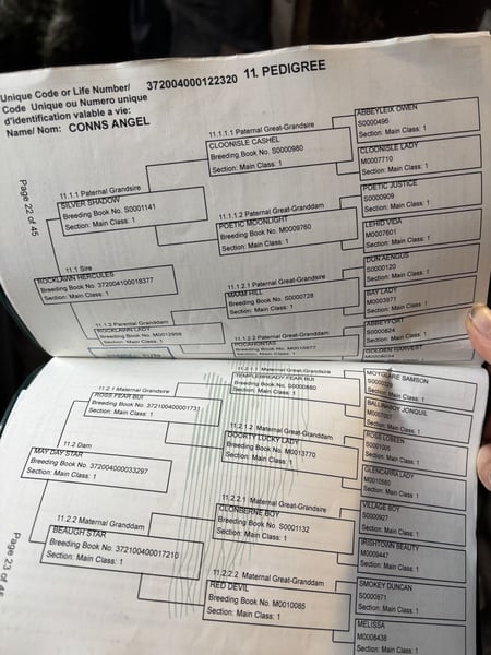 Ben jij een liefhebber van het Connemara-ras? Dan is deze pony zeker waar je naar op zoek bent!!😍 Angel is een officiële Connemara-merrie met een volledig papier en een mooie, correcte afstamming. Vader van vader = Zilver Shadow ! Vader van moeder = Ross Fear Bui ! Allemaal klasse 1 in haar pedigree Op 4 december 2025 is zij zonder bijzonderheden klinisch goedgekeurd; er zijn geen beperkingen gevonden. Ze werd omschreven als een prachtige merrie met potentie voor de sport. (Herkeuren is mogelijk, kosten koper.) Op 5 december 2025 is ze ook nog bij de hoefsmid geweest. Angel heeft een vriendelijk maar temperamentvol karakter. Ze is energiek, zit goed in haar vel en valt meteen op door haar uitstraling en vooral haar krachtige gangen! Ze is een gevoelige merrie maar wel een onwijs eerlijke merrie. Op dit moment meet ze 1,50 m, en ze zal naar verwachting nog doorgroeien tot ongeveer 1,55 +/- m. Haar vader is de valkkleurige Rocklawn Hercules (zie foto’s). Hij is getest op HWSD en is geen drager; ook zijn ouders testen negatief. Haar moeder is May Day Star, een bruine merrie die eveneens HWSD-negatief is. Ze is geclassificeerd in de 1e klasse, met een zeer goede beoordeling. Met haar stokmaat van 1,48 m en sterke prestaties geeft zij krachtige bewegingen door. Angel laat dat nu al duidelijk zien; ze beweegt indrukwekkend en heeft veel aanleg voor de sport. Natuurlijk zou ze ook geschikt zijn voor de fokkerij, maar haar kwaliteiten lijken vooral in de sport tot hun recht te komen. Geschikt voor springen / dressuur / eventingen / kar etc etc. Angel is geboren op 8 mei 2023 en is nog volledig groen. Ze gaat daarom uitsluitend naar iemand met ervaring in het opleiden van jonge paarden. Valt onder normale tot hogere prijsklasse