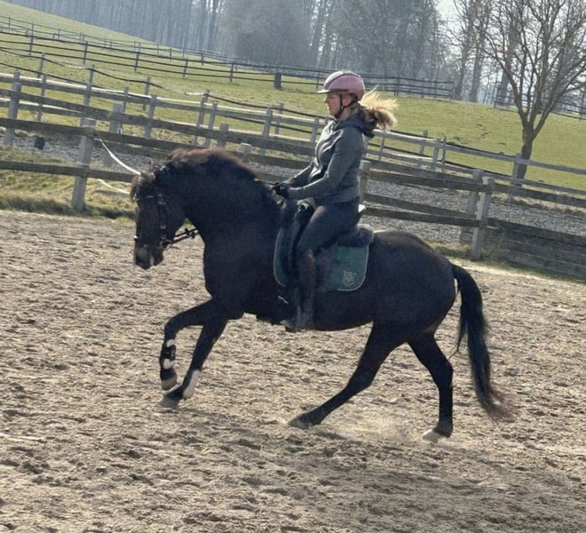 For sale is a promising Connemara mare, born in 2022. With her elegant type and a height of 146 cm, she combines the classic Connemara charm with great potential for sport and breeding. This young mare is well-ridden, exhibits an attentive and eager-to-learn nature, and has a solid foundation of training. She is friendly in handling and is already confidently ridden both indoors and on outdoor arenas. She has also completed short solo rides. Under saddle and in free movement, she shows a lot of ambition and will make a sport-oriented rider very happy. She is a pony that always stands out everywhere. Due to her young age, she is not suitable for beginners or children. Ideally, she would thrive with someone who challenges and develops her and enjoys working with diligent horses. She is a candidate for the State Premium and was awarded a 1b prize at the Elite Mare Show and the Verband Mare Show. Her sire is Diamant, a participant in the European Championships, who passed away last year. A true gem for breeding. I purchased her directly from the breeder and have trained her myself. (Previously ridden up to LK3 and S level) She can be stabled with geldings and mares. Naturally, she has been regularly dewormed, vaccinated, and introduced to the farrier and dentist. If interested or for further questions, please feel free to contact me. Videos are available. Viewing and trial rides can be arranged by appointment. Price is negotiable; I would also consider selling her as a broodmare. I am offering her because I neither breed nor participate in competitions, and this pony is simply too good for that.