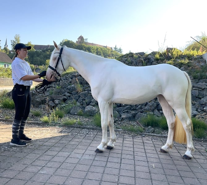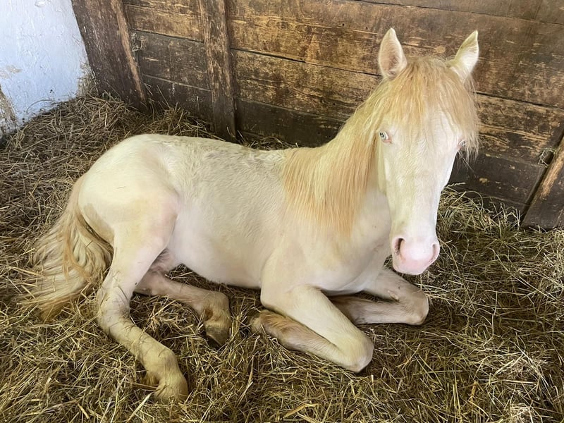 AZORES CASHEL AZORES CASHEL was born on 21.04.2021 in beautiful Ireland at Joe Burke one of the most renowned Connemara breeders in Ireland, she has a fantastic pedigree. Azores Cashel her HWSD status is N/ HWSD! At the moment Azores is 1,47 m we think she will be about 1,52 m! Her sire SHANBO RORY of the famous RORY RASPUTIN line paired with the very popular THUNDERBOLT blood and CARNA BOBBY blood! The dam MARA CASHEL also carries noble performance - show blood paired with the best jumping blood in her genes! DRUMBAD FLETCHER MOSS Her sire is descended from the famous FREDERIKSMINDE HAZY MATCH. CURRACHMORE CASHEL, OISIN, CUCHULAINN, BRIDGE BOY and many other interesting bloodlines are in our Azores Cashel. Completely ABBEYLEIX OWEN free ! Azores Cashel is a beautiful light Cremello young mare (BEC) with a very gentle and lovable character and very people-oriented and eager to learn! Azores Cashel has very good nerves and is now road and traffic safe for her age! Has no fear of large vehicles and machines! Drives trucks and horse transporters, is well-behaved at the vet and farrier, but still has problems giving his hooves to the farrier for a long time due to his growth behind! Scratching out hooves works well though! Azores Cashel is fully vaccinated with tetanus, equine influenza and EHV1,4 and can therefore move to any stable! Azores Cashel has very good hooves and is currently still living in the mares' young horse stable. Azores Cashel knows ground work, free jumping, free work in the round pen, lunging with a cap fence, pole work and walks outside! Due to her development, she has not yet been broken in as she is currently growing. Azores Cashel has 3 very good basic gaits with good ground coverage and rhythmic purity paired with very good jumping ability! Due to her size and growth, she is an ideal horse for someone who wants to acquire a good horse and wants to start riding late in the winter or next spring or ideally even later! Azores Cashel is a very socially acceptable, lovable mare who will fit into any herd! Azores complete pedigree can be found here under documents, as Ehorses likes to swallow parts of the pedigree. Azores currently lives in a mixed-age herd of mares in a loose stable! We charge an introductory fee of €70 on Sundays and public holidays and €50 on weekdays for each visit to our farm. This includes a maximum of 3 horses for viewing. The introductory fee must be paid in advance on arrival and refunded on purchase! If you like Azores Cashel, please contact us directly at the numbers given in the advertisement and include your full name and mobile phone number in an email - you are also welcome to contact us directly via Whatsapp at 00491713415878, in our beautiful village mobile telephony unfortunately does not work or only very poorly! Thank you for your interest! Your Lisbergs Stud - Lisbergs is always worth a visit - Stay fit and healthy Lisbergs Stud Farm