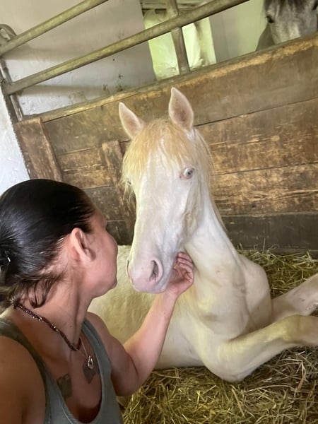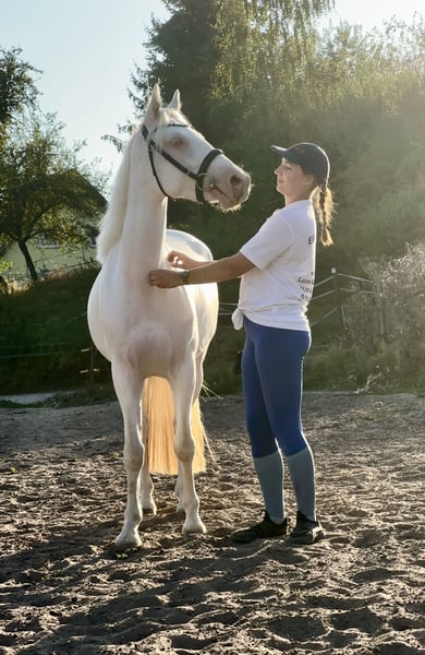 AZORES CASHEL AZORES CASHEL is geboren op 21.04.2021 in het mooie Ierland bij Joe Burke, een van de meest gerenommeerde Connemara-fokkers van Ierland. Ze heeft een droomachtig goed pedigree. Azores Cashel heeft een HWSD-status van N/HWSD! Op dit moment is Azores 1,47 m en we denken dat ze ongeveer 1,52 m zal worden! Haar vader SHANBO RORY komt uit de beroemde RORY RASPUTIN-lijn, gekoppeld aan het zeer gewilde THUNDERBOLT-bloed en CARNA BOBBY-bloed! Ook de moeder MARA CASHEL heeft edel prestatie- en showbloed, gekoppeld aan het beste springbloed in haar genen! DRUMBAD FLETCHER MOSS, haar vader, is afstammeling van de beroemde FREDERIKSMINDE HAZY MATCH. CURRACHMORE CASHEL, OISIN, CUCHULAINN, BRIDGE BOY en vele andere interessante bloedlijnen zijn aanwezig in onze Azores Cashel. Volledig ABBEYLEIX OWEN-vrij! Azores Cashel is een prachtige lichte Cremello merrie (BEC) met een zeer zachte, lieve karakter en is erg mensgericht en leergierig! Azores Cashel beschikt over een zeer goed zenuwgestel, is inmiddels leeftijdsadequaat verkeers- en straatveilig! Ze is niet bang voor grote voertuigen en machines! Ze rijdt in vrachtwagens en paardentransporters, is braaf bij de dierenarts en hoefsmid, maar heeft momenteel nog problemen met het geven van de hoeven bij de hoefsmid vanwege groei achteraan! Het uitkrabben van de hoeven gaat echter goed! Azores Cashel is volledig basisimmuniseerd en gevaccineerd tegen tetanus, paardeninfluenza en EHV1,4, en kan dus naar elke stal verhuizen! Azores Cashel heeft zeer goede hoeven en leeft momenteel nog in een jongveestal met merries. Azores Cashel kent grondwerk, vrijspringen, vrijwerken in de roundpen, longeren met een kaptoom, stangenwerk en wandelen buiten! Vanwege haar ontwikkeling is ze nog niet onder het zadel, omdat ze momenteel in de groei is. Azores Cashel beschikt over 3 zeer goede basisgangen met goede ruimtegrip en taktzuiverheid, gekoppeld aan een zeer goed springvermogen! Vanwege haar grootte en groei is ze een ideaal paard voor iemand die zich een goed paard wil aanleren en laat in de winter of het komende voorjaar, of idealiter nog later, wil beginnen met rijden! Azores Cashel is een zeer sociaal en lief merrie die zich in elke kudde kan aanpassen! Het volledige pedigree van Azores vindt u hier onder documenten, omdat Ehorses graag delen van het pedigree 'vergeet'. Azores leeft momenteel leeftijdsadequaat in een gemengde kudde merries in de loopstal! Voor een bezoek aan onze stal vragen we een kennismakingsvergoeding van 70€ op zon- en feestdagen en 50€ op werkdagen, dit omvat maximaal 3 paarden voor bezichtiging. De kennismakingsvergoeding moet vooraf bij aankomst worden betaald en wordt bij aankoop terugbetaald! Als u geïnteresseerd bent in Azores Cashel, neem dan alstublieft direct contact op met de opgegeven nummers in de advertentie en vermeld bij een e-mail uw volledige naam en mobiele telefoonnummer - u kunt ons ook rechtstreeks via WhatsApp bereiken op 00491713415878; in onze mooie plaats werkt mobiel bellen helaas niet of slechts zeer slecht! Hartelijk dank voor uw interesse! Uw Stal Lisbergs - Lisbergs is altijd een reis waard - Blijf fit en gezond Stal Lisbergs