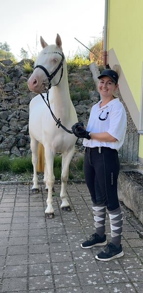AZORES CASHEL AZORES CASHEL nació el 21.04.2021 en la bella Irlanda de Joe Burke, uno de los criadores de Connemara más renombrados de Irlanda, tiene un pedigrí fantástico. ¡Azores Cashel su estatus HWSD es N/ HWSD! En este momento Azores mide 1,47 m. Creemos que llegará a medir 1,52 m. ¡Su padre SHANBO RORY de la famosa linea RORY RASPUTIN emparejado con la muy popular sangre THUNDERBOLT y CARNA BOBBY! La madre MARA CASHEL también lleva en sus genes noble sangre de show y la mejor sangre de salto. DRUMBAD FLETCHER MOSS Su padre es el famoso FREDERIKSMINDE HAZY MATCH. CURRACHMORE CASHEL, OISIN, CUCHULAINN, BRIDGE BOY y muchas otras líneas de sangre interesantes están en nuestro Azores Cashel. ¡Completamente ABBEYLEIX OWEN libre ! Azores Cashel es una preciosa yegua joven de Cremello (BEC) de color claro con un carácter muy dulce y cariñoso y muy orientada a la gente y con muchas ganas de aprender. ¡Azores Cashel tiene muy buenos nervios y ya es segura en carretera y en el tráfico para su edad! No tiene miedo a los vehículos grandes ni a las máquinas. Conduce camiones y transportadores de caballos, se porta bien en el veterinario y el herrador, ¡pero todavía tiene problemas para dar sus cascos al herrador durante mucho tiempo debido a su crecimiento por detrás! Sin embargo, rascarse los cascos funciona bien. Azores Cashel está totalmente vacunado contra el tétanos, la gripe equina y el EHV1,4, por lo que puede trasladarse a cualquier establo. Azores Cashel tiene muy buenos cascos y actualmente sigue viviendo en el establo de caballos jóvenes de las yeguas. ¡Azores Cashel sabe trabajar en el suelo, salto libre, trabajo libre en el corral redondo, lunging con valla de caperuza, trabajo con garrocha y paseos al aire libre! Debido a su desarrollo, aún no ha sido domada, ya que se encuentra en fase de crecimiento. Azores Cashel tiene 3 aires básicos muy buenos con buena cubrición y ritmo y muy buena habilidad para el salto. ¡Debido a su tamaño y crecimiento, es un caballo ideal para alguien que quiere adquirir un buen caballo y quiere empezar a montar a finales del invierno o la próxima primavera o, idealmente, incluso más tarde! ¡Azores Cashel es una yegua muy socialmente aceptable y adorable que encajará en cualquier manada! Azores pedigrí completo se puede encontrar aquí en los documentos, como Ehorses le gusta tragar partes del pedigrí. ¡Azores vive actualmente en un rebaño de yeguas de edad mixta en un establo suelto! Cobramos una tarifa introductoria de 70 euros los domingos y festivos y 50 euros los días laborables por cada visita a nuestra granja, que incluye un máximo de 3 caballos para ver. La cuota introductoria debe pagarse por adelantado a la llegada y se reembolsa en el momento de la compra. ¡Si te gusta Azores Cashel, por favor póngase en contacto con nosotros directamente en los números indicados en el anuncio e incluir su nombre completo y número de teléfono móvil en un correo electrónico - también son bienvenidos a ponerse en contacto con nosotros directamente a través de Whatsapp en 00491713415878, en nuestro hermoso pueblo de telefonía móvil por desgracia no funciona o sólo muy mal! Gracias por su interés. Su Yeguada Lisbergs - Lisbergs siempre vale la pena una visita - Manténgase en forma y saludable Yeguada Lisbergs