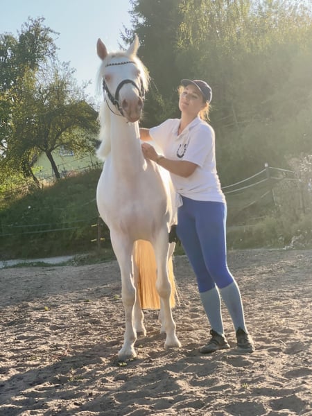 AZORES CASHEL AZORES CASHEL urodziła się 21.04.2021 w pięknej Irlandii u Joe Burke'a, jednego z najbardziej znanych irlandzkich hodowców Connemara, ma fantastyczny rodowód. Azores Cashel jej status HWSD to N / HWSD! W tej chwili Azores mierzy 1,47 m, myślimy, że osiągnie około 1,52 m! Jej ojciec SHANBO RORY ze słynnej linii RORY RASPUTIN w połączeniu z bardzo popularną krwią THUNDERBOLT i CARNA BOBBY! Matka MARA CASHEL również ma w genach szlachetną krew pokazową połączoną z najlepszą krwią skokową! DRUMBAD FLETCHER MOSS Jej ojcem jest słynny FREDERIKSMINDE HAZY MATCH. CURRACHMORE CASHEL, OISIN, CUCHULAINN, BRIDGE BOY i wiele innych interesujących linii krwi znajduje się w naszym Azores Cashel. Całkowicie wolny od ABBEYLEIX OWEN! Azores Cashel to piękna, jasna klacz rasy Cremello (BEC) o bardzo łagodnym, miłym charakterze, bardzo zorientowana na ludzi i chętna do nauki! Azores Cashel ma bardzo dobre nerwy i jest teraz bezpieczna na drodze i w ruchu drogowym jak na swój wiek! Nie boi się dużych pojazdów i maszyn! Jeździ ciężarówkami i transporterami do przewozu koni, dobrze zachowuje się u weterynarza i kowala, ale nadal ma problemy z oddawaniem kopyt kowalowi na długi czas ze względu na swój wzrost z tyłu! Drapanie kopyt działa jednak dobrze! Azor Cashel jest w pełni zaszczepiony na tężec, grypę koni i EHV1,4, dzięki czemu może zamieszkać w każdej stajni! Azor Cashel ma bardzo dobre kopyta i obecnie nadal mieszka w stajni dla młodych klaczy. Azores Cashel zna pracę naziemną, swobodne skoki, swobodną pracę w okrągłym kojcu, lonżowanie z ogrodzeniem czaprakowym, pracę na tyczkach i spacery na zewnątrz! Ze względu na swój rozwój nie została jeszcze zajeżdżona, ponieważ obecnie rośnie. Azores Cashel ma 3 bardzo dobre podstawowe chody z dobrym pokryciem terenu i rytmem w połączeniu z bardzo dobrą skocznością! Ze względu na swój rozmiar i wzrost jest idealnym koniem dla kogoś, kto chce nabyć dobrego konia i chce zacząć jeździć późną zimą lub następną wiosną, a najlepiej nawet później! Azores Cashel to bardzo towarzyska, kochana klacz, która będzie pasować do każdego stada! Pełny rodowód Azora można znaleźć tutaj pod dokumentami, gdyż Ehorses lubi połykać fragmenty rodowodu. Azor żyje obecnie w mieszanym stadzie klaczy w luźnej stajni! Pobieramy opłatę wstępną w wysokości 70 € w niedziele i święta oraz 50 € w dni powszednie za każdą wizytę na naszej farmie, która obejmuje maksymalnie 3 konie do obejrzenia. Opłata wstępna musi zostać uiszczona z góry w dniu przyjazdu i zwrócona przy zakupie! Jeśli podoba Ci się Azores Cashel, skontaktuj się z nami bezpośrednio pod numerami podanymi w ogłoszeniu i podaj swoje imię i nazwisko oraz numer telefonu komórkowego w wiadomości e-mail - możesz również skontaktować się z nami bezpośrednio przez Whatsapp pod adresem 00491713415878, w naszej pięknej wiosce telefonia komórkowa niestety nie działa lub działa bardzo źle! Dziękujemy za zainteresowanie! Twoja stadnina Lisbergs - Lisbergs jest zawsze warte odwiedzenia - pozostań sprawny i zdrowy Stadnina Lisbergs