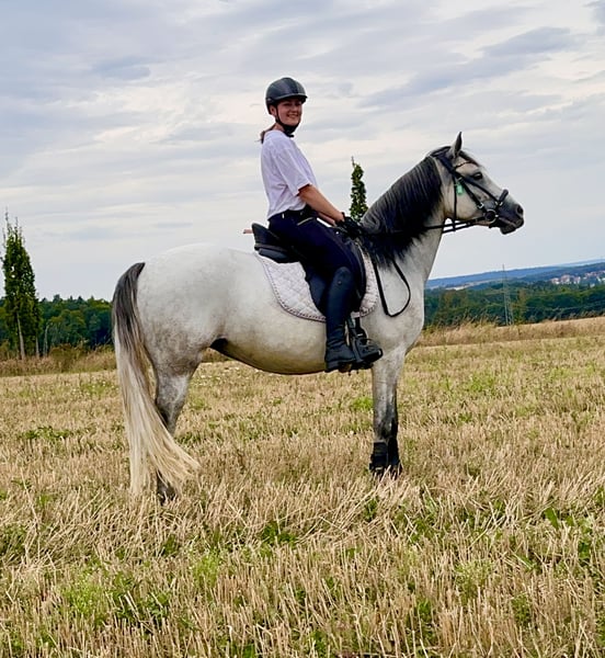 Lisberg's Lady Liberty Lisbergs Lady Liberty is a very beautiful black mare standing in the pony ace currently at 1.43 m and will not exceed 1.48 m! Lisbergs Lady Liberty was born on 12.06.2019 in beautiful Lisberg at 6.16 h in the morning. Lisbergs Lady Liberty's HWSD status is N / N, which means no carrier and ideal for breeding with rare bloodlines of the Connemara breed. Lisberg's Lady Liberty dam is Amy's Lady by Curraghakeen Cashel and on her dam's side by Westside Mirah and other top sires of the Connemara breed. The dam Amy's Lady is also a performance tested broodmare with 7.68, coincidentally the same test result as her daughter Liberty. Liberty has a healthy self-confidence which a good sport pony needs for his future. Her 3 basic gaits are expressive with good movements and nice balance, she has a good jumping manner and has already completed a few small jumps with the rider. Liberty is the ideal pony for a better rider who wants to learn and experience a lot with his pony. She would also make a good bush pony as Liberty is a brave pony. Lisberg's Lady Liberty is the only one of the Wirthsmühle Dark Diamond Pony to be performance tested to date. Dark was the champion stallion of the sport ponies at the licensing on 10.03.18 - with a sensational score of 8.0 in the licensing protocol! His enormous ability was proven in the performance test with a sensational score of 8.7 points. In addition, Dark received the coveted federal premium at the FN Bundesschau in Berlin in January 2023. Liberty takes after her sporty sire and has all the lovability and beauty of her mom Amy's Lady as well as the athletic willingness to perform! Liberty is barehoof and loves to move in nature! She is super relaxed when mounting and dismounting! Due to her good character and friendliness towards other horses and dogs, she would also be a good safe cross-country horse for a not so strong rider with a dog or for riding hunts! At the moment we are focusing more on cross-country safety and riding in traffic! Of course, Liberty also goes off-road on her own, can be ridden to and from a group and comes home with the rider on her back! Liberty was performance tested with 7.68 points in Ansbach on 25.04.2023. Lisberg's Lady Liberty was invited to the state show in Munich at the studbook registration on 17.05.2023 in Burgebrach with 7.57 points! At the state show our Lisbergs Lady Liberty received the title premium mare candidate and we are very proud of this beautiful typey young mare, after that we sent our Lisbergs Lady Liberty on summer vacation and now she is back freshly recovered from Upper Bavaria and the work slowly starts again. Liberty has no sweet itch or other nasties such as weaving or bucking! Lady loves to travel with a horsebox or in a truck! She is an ideal pony for people who want a pony in a pony ace. Liberty has beautiful ground covering gaits, her canter stands out and she behaves excellently in the open stable group and in the panel box stable and in the box. Liberty is vaccinated with EHV 1.4 as well as tetanus and equine influenza and regularly dewormed! Unfortunately, our Lady no longer fits into our new breeding concept, as she is too similar to our "new" Connemara stallion for our taste, hence the difficult sale of this white Bavarian Irish elf. The complete pedigree of Lisbergs Lady Liberty can be found in the documents section, as ehorses often does not reproduce the pedigrees completely as well as her performance test from 25.04.2023. Don't forget that Connemara ponies are not fully grown and developed until they are 7-8 years old, so age-appropriate riding is a guarantee for long enjoyment of the pony! Well cared for Connemaras are long-lived and 30 years is not uncommon for the breed. If you like Lisbergs Lady Liberty, please contact us directly at the numbers given in the ad and include your name and mobile phone number in an email - you are also welcome to contact us directly via WhatsApp at 00491713415878, in our beautiful town mobile telephony unfortunately does not work or only very poorly! For each visit to our farm we charge a flat rate of 50€ on weekdays and 70€ on Sundays and public holidays! Best regards and maybe see you soon - Gestüt Lisbergs is always worth a visit!