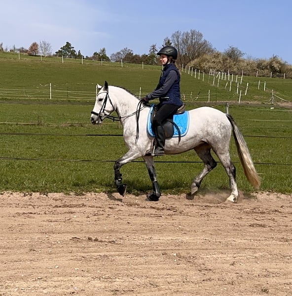Lisbergs Lady Liberty Lisbergs Lady Liberty ist eine sehr schöne im Ponymass stehende Rappstute aktuell mit 1,43 m und wird die 1,48 m nicht überschreiten! Lisbergs Lady Liberty wurde am 12.06.2019 im schönen Lisberg morgens um 6.16 h geboren. Lisbergs Lady Liberty ihr HWSD-Status lautet N / N, dass heisst kein Träger und ideal zum Züchten auch mit seltenen Blutlinien der Rasse Connemara. Lisbergs Lady Liberty Mama ist Amy's Lady von Curraghakeen Cashel und mütterlicherseits von Westside Mirah und anderen Top-Vererbern der Connemara-Zucht. Die Mutter Amy's Lady ist auch eine leistungsgeprüfte Zuchtstute mit 7,68 zufällig das selbe Prüfungsergebnis wie Ihre Tochter Liberty. Liberty verfügt über ein gesundes Selbstbewusstsein welches ein gutes Sportpony für seine Zukunft braucht. Ihre 3 Grundgangarten sind ausdrucksstark mit guten Bewegungen schöner Balance, sie verfügt über eine gute Springmanier und hat auch auch schon ein paar kleine Sprünge mit dem Reiter absolviert. Liberty ist das ideale Pony für einen besseren Reiter, der viel mit seinen Pony lernen und erleben möchte. Sie wäre auch ein gutes Busch-Pony, da Liberty ein mutiges Pony ist. Lisbergs Lady Liberty ist bisher das einzigste Leistungsgeprüfte von dem Wirthsmühle Dark Diamond Pony. Dark wurde Siegerhengst der Sportponies bei der Körung am 10.03.18 – mit einer sensationellen Note von 8,0 im Körprotokoll! Leistungsprüfung sein enormes Vermögen, mit einer sensationellen Note von 8,7 Punkten. Zudem hat Dark im Januar 2023 auf der FN Bundesschau in Berlin die begehrte Bundesprämie erhalten. Liberty geht ganz nach Ihrem sportlichen Vater und hat all das liebenswerte und auch die Schönheit von Ihrer Mama Amy's Lady genau wie die sportliche Leistungsbereitschaft! Liberty ist Barhuf und liebt es sich in der Natur zu bewegen! Beim Auf- und Absitzen ist sie super entspannt! Auf Grund ihres guten Charakters und der Freundlichkeit gegenüber anderen Pferden und Hunden wäre sie auch ein gutes sicheres Geländepferd für einen nicht so starken Reiter auch mit Hund oder für die Reitjagd! Wir legen im Moment eher den Schwerpunkt in die Geländesicherheit und auf das Reiten im Strassenverkehr! Selbstverständlich geht Liberty auch alleine ins Gelände, kann zu einer Gruppe hin und auch wieder weg geritten werden und kommt mit dem Reiter auf dem Rücken wieder nach Hause! Liberty ist mit 7,68 Punkten in Ansbach am 25.04.2023 Leistungsgeprüft worden. Lisbergs Lady Liberty wurde bei der Stutbucheintragung am 17.05.2023 in Burgebrach mit 7,57 Punkten nach München zur Landesschau eingeladen! Auf der Landesschau erhielt unsere Lisbergs Lady Liberty den Titel Prämienstuten-Anwärterin und sind sehr stolz auf diese schöne typvolle junge Stute, danach schickten wir unsere Lisbergs Lady Liberty in die Sommerferien und jetzt ist sie frisch erholt aus Oberbayern zurück und die Arbeit beginnt langsam wieder. Liberty hat kein Sommerekzem und andere Unarten wie Weben oder Koppen! Lady reist gerne mit Pferdetransporter oder im LKW! Sie ist ein ideales Pony für Leute die es ein Pony im Ponymass möchten. Liberty verfügt über schöne raumgreifende Grundgangarten, wobei der Galopp besonders hervor sticht und in der Offenstallgruppe und im Panel-Boxenstall und in der Box benimmt sie sich hervorragend.Liberty ist sie grundimunisiert mit EHV 1,4 sowie Tetanus und Pferde-Influenza und regelmässig entwurmt! Leider passt unsere Lady nicht mehr in unser neues Zuchtkonzept, da sie mit unseren „neuen“ Connemara Hengst für unseren Geschmack zu ähnlich ist, daher jetzt der schwere Verkauf dieser weissen bayrischen irischen Elfe. Das komplette Pedigree von Lisbergs Lady Liberty finden Sie in der Abteilung Dokumente, da ehorses häufig die Abstammungen nicht komplett wiedergibt genauso wie Ihre Leistungsprüfung vom 25.04.2023. Nicht vergessen, darf man das Connemara Ponies erst mit 7-8 Jahren komplett ausgewachsen und entwickelt sind, daher ist eine altersgerechte Reiterei ein Garant für lange Freude am Pony! Gut gepflegte Connemaras sind langlebig und 30 Jahre ist keine Seltenheit bei der Rasse. Sollten Ihnen Lisbergs Lady Liberty gefallen, wenden Sie sich bitte direkt an die angegebenen Nummern aus der Anzeige und geben Sie bei einer email Ihren Namen und Ihre Mobilrufnummer an- gerne können Sie uns auch direkt über WhatsApp unter 00491713415878 kontaktieren, in unserem schönen Ort funktioniert das mobile telefonieren leider nicht oder nur sehr schlecht! Pro Besuch auf unseren Betrieb erheben wir eine Kennenlern-Pauschale von 50€ wochentags und 70€ an Sonn- und Feiertagen! Liebe Grüsse und vielleicht bis bald - Gestüt Lisbergs ist immer eine Reise wert!