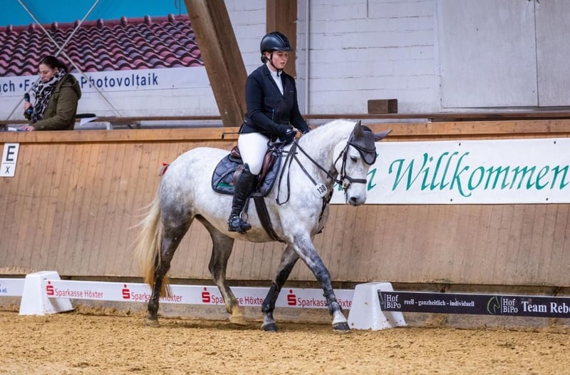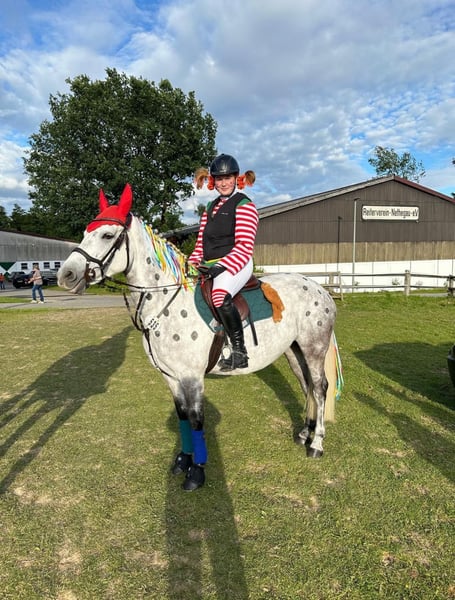 La pony ya está llegando al final de su etapa de ponis, por lo que buscamos un nuevo hogar para nuestra yegua Connemara de 7 años, Killina Star. La compramos a los 3 años, tras haberla montado y entrenado nosotros mismos, en la finca de Hannah y Michaela de los Connemara Ponys Neupärtl. Killina Star, a la que cariñosamente llamamos Schnuff, mide 1,46 m, está vacunada y desparasitadas regularmente, y por supuesto, visitada con regularidad por el herrero. Tiene los cascos delanteros con herraduras y los traseros en casco natural. Schnuff es una yegua confiable en campo, compite en doma clásica en nivel A, en salto en A y en salto en A*, y ha participado en concursos hasta nivel A**. Conoce obstáculos de cross y salta con valentía sobre todos ellos. Esta temporada, junto a una niña de 11 años, ha ganado en concursos de salto en la WBO, tanto en salto en equitación como en salto en categoría E. Killina Star no es una yegua que se escape de los obstáculos, pero sí una pony muy bien entrenada, que siempre da mucho gusto montar. En su trato, la yegua es siempre tranquila, aunque en algunos días puede estar un poco más nerviosa. Se puede cargar sola en el remolque, incluso cuando nuestro herrero la trabaja solo si no tenemos tiempo, y en cuanto a cuidado diario como el cepillado, es muy sencilla y agradable. Ya sea en casa o en excursiones, siempre es confiable. Buscamos un nuevo propietario con aspiraciones deportivas, ya que a la yegua le gusta estar activa. Montarla solo en el campo probablemente sería aburrido para ella a largo plazo. También sería ideal una pareja madre-hijo. La yegua es tranquila y fácil de manejar, pero no es un pony exclusivamente para niños o principiantes; con apoyo, no vemos ningún problema. Se puede montar bien sin riendas, y en la cuerda, en las tres gaitas, responde a cada comando y camina tranquilamente. También disfruta mucho montar sin silla o saltar solo con una cuerda de hocico. Killina Star le gusta tener un programa variado. Si Killina Star ha despertado tu interés, no dudes en contactarnos para más información. Disponemos de una gran radiografía de control, incluyendo 15 radiografías de las patas y la espalda, sin hallazgos, realizada el 20 de noviembre. Las radiografías y el informe pueden enviarse si estás interesado.