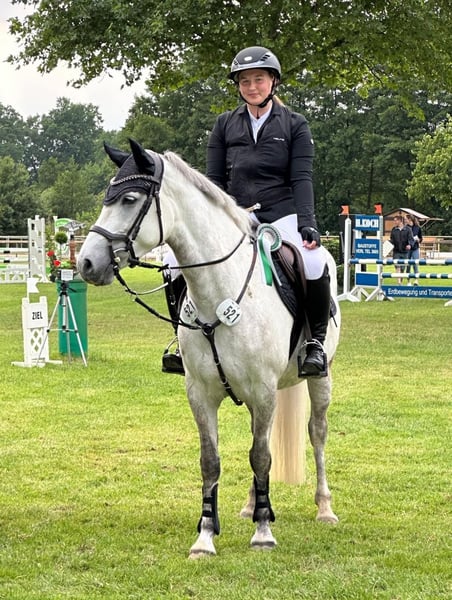 The pony days are coming to an end, and we are therefore looking for a new home for our 7-year-old Connemara mare, Killina Star. We purchased her as a 3-year-old from Hannah and Michaela of the Connemara Ponies Neupärtl, having ridden and trained her ourselves. Killina Star, affectionately called Schnuff, is 1.46 m tall, regularly vaccinated and dewormed, and has been seen regularly by the farrier. She is shod in front and barefoot behind. Schnuff is a reliable partner in the field, with experience in dressage up to medium level, and has placements in A and A* show jumping classes. She has competed up to A** level in competitions. She is familiar with cross-country obstacles and jumps confidently over everything. This season, she has won show jumping competitions and E-classes at WBO events with an 11-year-old girl. Killina Star is not a light jumper, but a very well-trained 7-year-old pony that is always a joy to ride. The mare is always well-behaved in handling, though she can be a bit spirited on some days. She loads easily alone, and our farrier can work on her independently if our schedule doesn’t allow. She is straightforward and pleasant to handle when it comes to grooming and daily care. Whether at home or away, she is always reliable! We are looking for a sportily ambitious new owner for this pony, as she enjoys being active. Just riding in the field would probably become too boring for her over time. A mother-child combination is also very much possible! The mare is well-behaved and uncomplicated but not a pure children’s or beginner’s pony. With support, we see no issues there. She can be ridden well while lunged and walks calmly in all three gaits on the lunge, responding to every command. She also enjoys riding without a saddle or jumping with just a halter. Killina Star loves a varied program. If Killina Star has caught your interest, please feel free to contact us for more information. A comprehensive ultrasound examination, including 15 X-ray images of her legs and back, was performed on November 20th with no findings. The X-ray images and report can be sent upon request.
