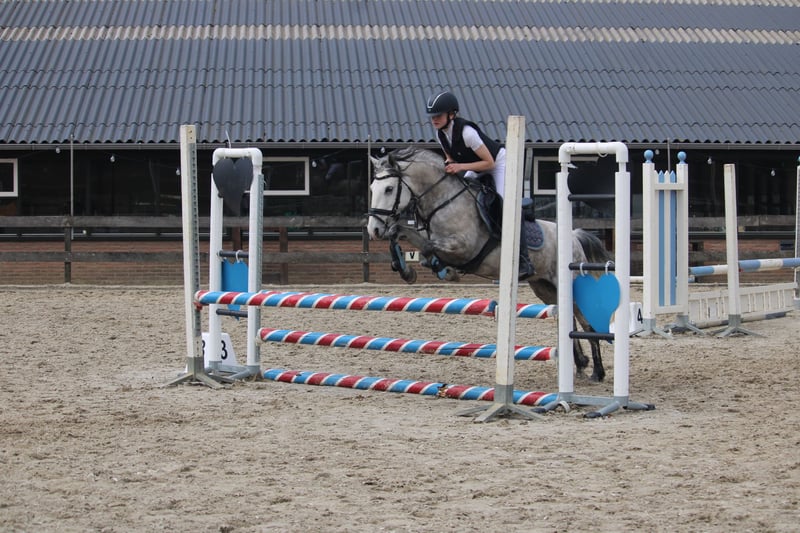 River is een (dit jaar) 9 jarige C pony merrie van 1.36, knhs gemeten. Zo toont groter dan ze is , dus een pony waar je lang op door kan rijden. Ze is een fijn gereden pony die van alle markten thuis is, daarnaast heeft ze ook nog eens een super lief karakter. Je kan fijn met haar dressuren, ze geniet van een buitenrit, heeft kennis gemaakt met cross hindernissen, maar het allerleukste om te doen vind ze springen. De afgelopen maanden heeft ze mee gelopen in de selecties met een jonge ruiter, waarbij ze meerdere keren in de prijzen reed en zich wist te selecteren voor de Brabantse kampioenschappen springen. Thuis springt ze met gemak een parcours van 80cm en loopt eigenlijk altijd foutloos. Pony die geen hout wil raken en fijn met je mee denkt. Wij zien haar graag gaan naar een ruitertje die verder de sport met haar in wil. River is in het bezig van paspoort , half Connemara papier en chip en is in orde met entingen e.d Ook is ze x-ray gekeurd geweesr met goede fotos, uiteraard mogen alle keuringen opnieuw gedaan worden. K.K BEZICHTIGEN ; ETTEN LEUR