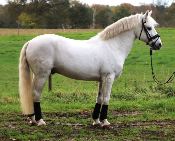 Connemara Gelding – Perfect for Leisure Riding! For sale is a lovely Connemara gelding, born in 2018. This grey impresses with his friendly nature and calm temperament. Standing at 146 cm (about 14.1 hh), he is ideally suited for recreational riding and demonstrates versatility in various activities. The gelding is healthy, regularly vaccinated, and presents a neat appearance. Well-trained and reliable in handling, he is looking forward to a new, caring family that will appreciate his talents. He is accustomed to open stable management. Barefoot and compact-built, he also comfortably suits taller riders. For more information or to arrange a viewing, please contact me at 0172 2734811. Come and see this charming leisure horse for yourself!