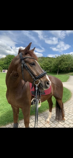 Verkaufe Connemara-Wallach – Perfekt für Dressur und Springen Baron ist ein echter Kumpeltyp und sucht jemanden bei dem er bis zum Schluss bleiben kann. Hier gilt Platz vor Preis und er wird nur in die Nähere Umgebung abgegeben. Und ist ein perfekter Mensch für ihn sehr wichtig weil er für uns nur das Beste verdient hat. Zum Verkauf steht ein wunderschöner Connemara-Wallach, geboren im Jahr 2015. Er ist ein eleganter Dunkelfuchs mit einem Stockmaß von 157 cm und bringt viel Charme sowie Charakter mit sich. Das Pferd ist ideal für den Dressursport geeignet und zeigt bereits viel Talent und Lernbereitschaft. Er liebt Abwechslung zwischen Ausritten und dem normalen Training er zeigt sich ebenso motiviert und glücklich im Spingen. Er hat Spaß an der Arbeit und ist offen für Neues und lernwillig. Den Grundbaustein einiger Grundanforderungen der Dressur Klasse M beherrscht er bereits und von daher bietet er eine gute Grundlage sich in dieser Klasse mit ein wenig Arbeit zu festigen. Im Parcours bis einschließlich 110 cm hat er bis jetz problemlos hinbekommen. Mit ein wenig Arbeit ist sicher auch noch Luft nach oben. Der Wallach ist freundlich im Umgang, sowohl beim Putzen als auch beim Reiten. Er ist gesund, regelmäßig geimpft und schmerzfrei. Seine ausgeglichene Art macht ihn zum zuverlässigen Partner für sowohl den entspannten als auch turnierambitionierten Freizeitreiterambitionierte Reiter, die Wert auf ein vielseitiges und charakterstarkes Pferd legen. Er stand, sein ganzes Leben in einer Box mit sehr großem Paddock und ist täglichen Koppelgang gewohnt. Auch mit der Kulisse auf dem Turnier hatte er nie Probleme. Bei Interesse oder für weitere Informationen stehe ich gerne zur Verfügung. Besichtigungen und Proberitte sind nach Vereinbarung möglich. Schutzgebühr 50€ um Reitturismus zu verhindern. (wird beim Kauf verrechnet) Gerne per WhatsApp an 01735320974