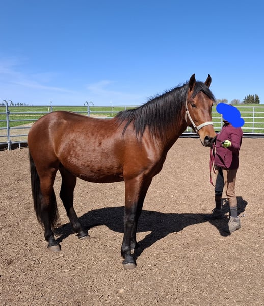 Zum Verkauf steht ein wunderschöner brauner Cruzado Hengst, geboren im Jahr 2022. Mit einem geschätzten Endmaß von 162 cm. Er ist in Deutschland geboren und besitzt einen grünen Pass. Bonito ist noch nicht geritten. Er ist halfterführig, wurde ein paar Mal longiert und kennt auch schon den Sattel. Er ist Tetanus geimpft und entwurmt, wird regelmäßig alle sechs Wochen vom Hufpfleger bearbeitet. Die Zähne wurden im September gemacht, dabei wurden die Wolfszähne entfernt. Bonito ist nicht hengstig, braucht jedoch einen konsequenten Menschen an seiner Seite, da er typisch Jungpferd auch mal testet. Der junge Hengst überzeugt durch ein angenehmes Temperament, schöne Grundgangarten und ein korrekten Körperbau. Er war noch nie krank. Auf Wunsch kann gegen einen geringen Aufpreis ein Sattel (muss natürlich aufs Pferd angepasst werden)Trense und weiteres Zubehör mitgegeben werden. Bei Interesse oder für weitere Informationen stehe ich Ihnen gerne zur Verfügung. Ein Kennenlernen ist nach Absprache möglich.