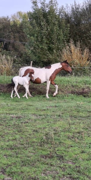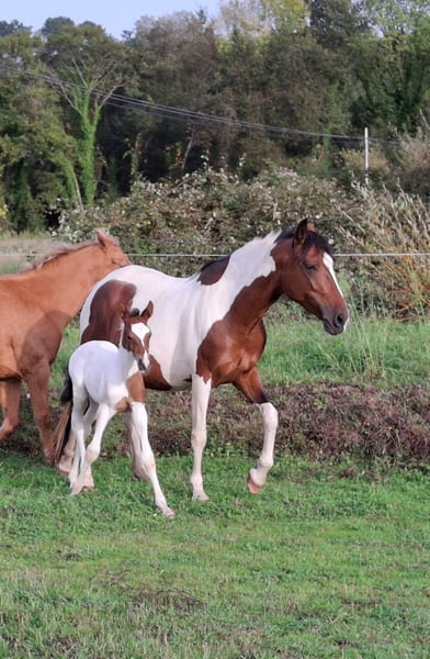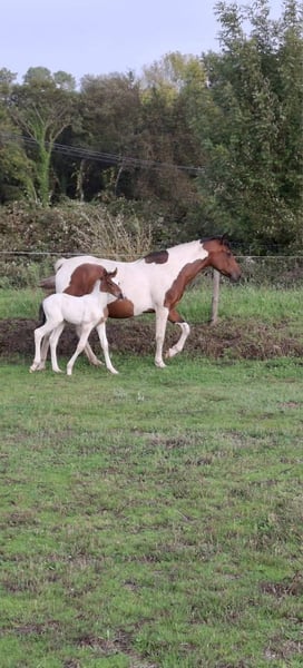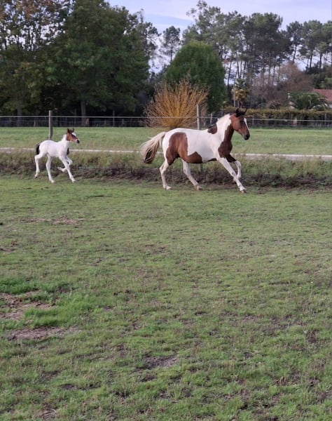 Se vende maravillosa yegua de capa pía montada caracter fabuloso cruzada de español con lusitano con potro de capa pio recien nacido ejemplares especiales de capa fotos del padre de capa pio perla