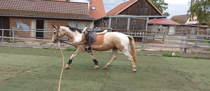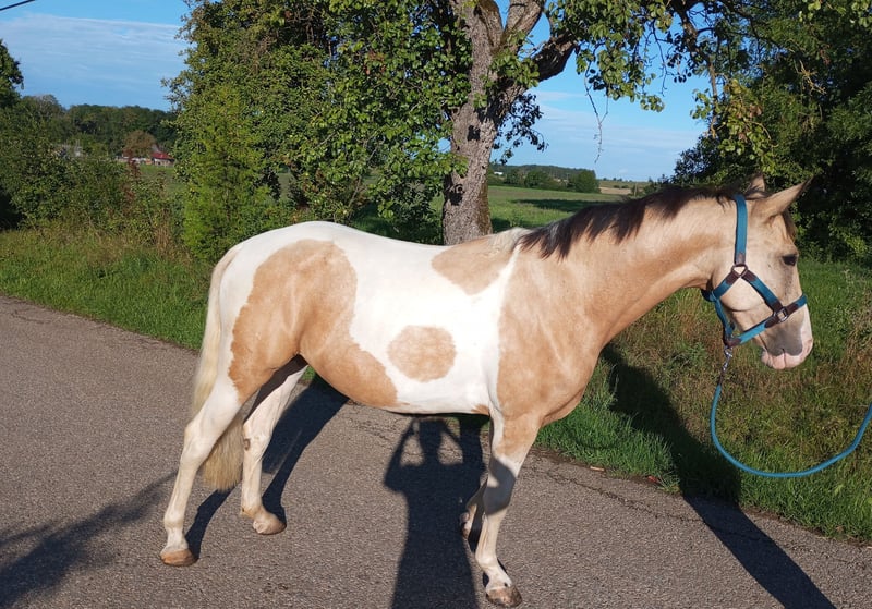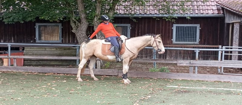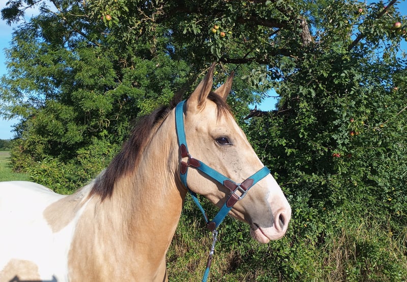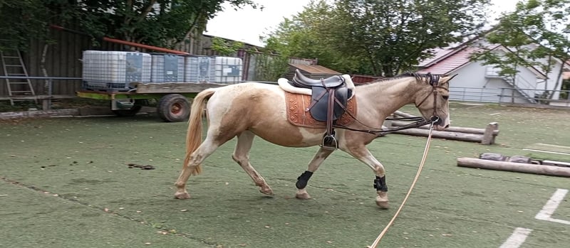 Unsere Frieda ist eine total menschenbezogene liebe Andalusier-Mix Stute. Sie wird im Juli 4 Jahre alt und ist momentan ca. 153 cm. Kurze Eckdaten anstatt Roman: - Schmusemaus - super bequem zu sitzen - geht Gelände, Platz, Halle, Longe, super lieb und lernwillig - Trailparcour mit Wippe, Brücke, Reifen…...macht sie alles - steht mit groß und klein auf der Koppel - kennt Boxe und Offenstall - waschen, Hufschmied,…...kennt sie alles, macht sie alles - geimpft, entwurmt - Aku kann gerne gemacht werden Für weitere Fragen bitte anrufen unter 01739477261 oder per WhatsApp. Videos auf Anfrage. Mails werden nicht zeitnah beantwortet. Fürs Vorstellen, Probereiten verlange ich eine pauschale von 25 Euro.