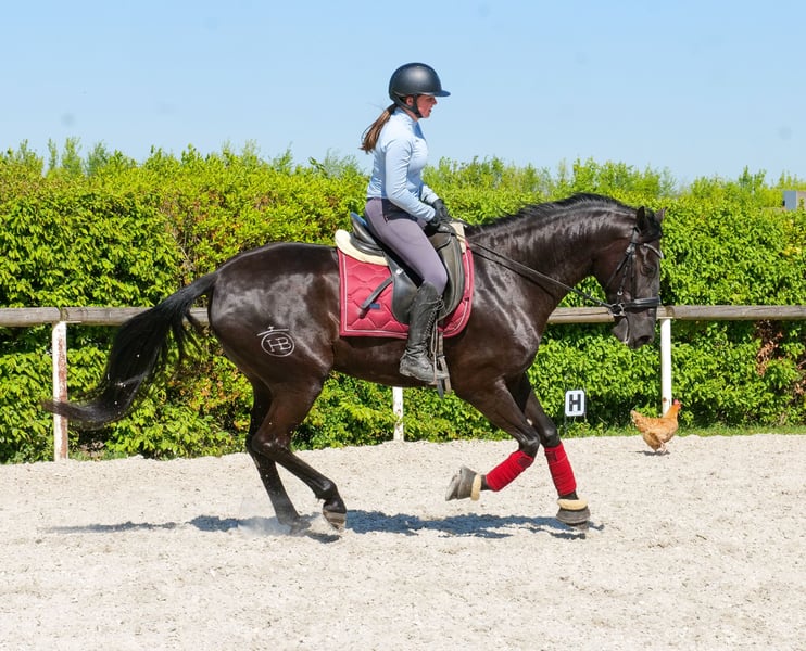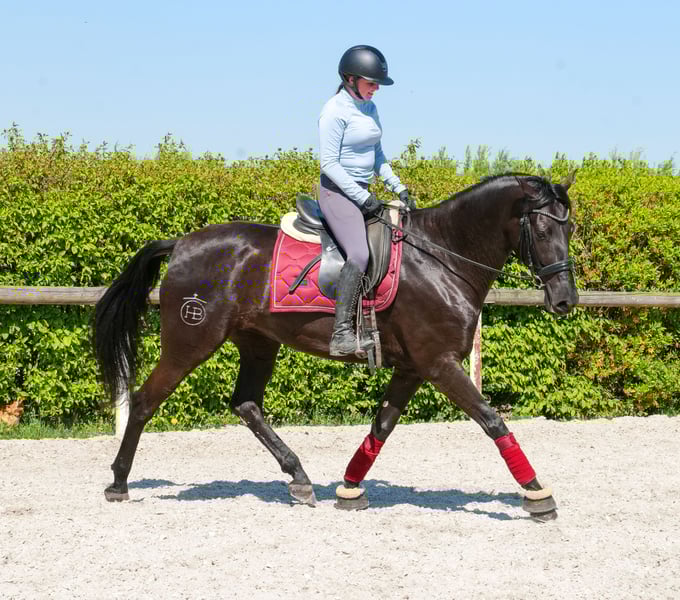 Name: Fariba Rasse: Cruzado, Kreuzung Geschlecht: Stute Geburtsdatum: 01.08.2022 Alter: 4 Stockmaß: 1.58m Farbe: Rappe Abstammung: ohne Abstammungsnachweis Charakter: menschenbezogen, neugierig, intelligent, lernwillig, mutig, geduldig, gelassen Ausbildung/Eignung: geritten, Dressur, Freizeit, Barock, Working Equitation, für Kinder geeignet Geländeerfahrung: aufmerksam, nervenstark, zuverlässig, unerschrocken, in der Gruppe Gesundheit: entwurmt, geimpft, Barhufer, ekzemfrei, Zähne kontrolliert, osteopathisch behandelt Haltung: Box, Offenstall Besonderheiten: sehr sitzbequem, schmiede und verladefromm, herdenverträglich Die genannten Eigenschaften beruhen auf unserer persönlichen Einschätzung und stellen keine zugesicherten Merkmale dar. Preis: 9900 (Bruttopreis) Haben wir ihr Interesse geweckt? Um Ihnen einen besseren Eindruck von Fariba zu geben, senden wir Ihnen sehr gerne Ihr Reitvideo zu. Selbstverständlich stehen wir Ihnen für eine ausführliche Beschreibung des Pferdes, persönliche Beratung und zur Beantwortung aller Ihrer Fragen auch telefonisch zur Verfügung. Bitte schreiben Sie uns hierfür jederzeit eine WhatsApp Nachricht, oder rufen unter folgender Telefonnummer an: +49 15119487595 Unsere Telefonzeiten sind täglich von 7:00 - 13:30 sowie ab 20:00Uhr. Wir freuen uns über Ihre Kontaktaufnahme! Eine klinische oder Röntgenologische Ankaufsuntersuchung kann gerne vom Tierarzt Ihrer Wahl durchgeführt werden. Natürlich kann Fariba sicher und komfortabel in ihr neues Zuhause geliefert werden. Wir kümmern uns um alle notwendigen Vorbereitungen und den Transport, damit Ihr neues Pferd stressfrei, gut betreut, versichert und wohlbehalten im neuen Zuhause ankommt. Zurzeit präsentieren wir eine sorgfältig ausgewählte Vielfalt an Verkaufspferden. Bei uns finden Sie garantiert Ihr Traumpferd. Besuchen Sie uns auch gerne auf unserer Homepage unter: www.marvinsroyalhorses.de. Sehr geehrte Kunden, gerne stellen wir Ihnen unsere Pferde vor und führen, putzen, satteln, longieren, Bodenarbeit sowie Probereiten in der Reithalle, auf dem Platz oder im Gelände ist Ihnen möglich, um Ihr neues Familienmitglied näher kennenzulernen. Dieses kostet für ein Pferd 40€, für jedes weitere 30€ und wird beim Kauf wieder erstattet. Unsere Adresse lautet: Grube Ferdinand 50 53577 Neustadt Wied Google Maps: marvinsroyalhorses