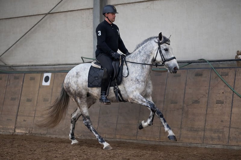 Name: Valentina Rasse: Cruzado, Kreuzung Geschlecht: Stute Geburtsdatum: 14.02.2021 Alter: 5 Stockmaß: 1.55m Farbe: Schimmel Abstammung: ohne Abstammungsnachweis Charakter: menschenbezogen, neugierig, intelligent, mutig, geduldig, gelassen Ausbildung/Eignung: Dressur, Freizeit, Working Equitation Geländeerfahrung: aufmerksam, nervenstark, zuverlässig, unerschrocken, alleine und in der Gruppe Gesundheit: entwurmt, geimpft, Barhufer, ekzemfrei, Zähne kontrolliert, ostheopatisch behandelt Haltung: Box, Offenstall Besonderheiten: schmiede und verladefromm, herdenverträglich Die genannten Eigenschaften beruhen auf unserer persönlichen Einschätzung und stellen keine zugesicherten Merkmale dar. Preis: 6900 (Bruttopreis) Haben wir ihr Interesse geweckt? Um Ihnen einen besseren Eindruck von Valentina zu geben, senden wir Ihnen sehr gerne Ihr Reitvideo zu. Selbstverständlich stehen wir Ihnen für eine ausführliche Beschreibung des Pferdes, persönliche Beratung und zur Beantwortung aller Ihrer Fragen auch telefonisch zur Verfügung. Bitte schreiben Sie uns hierfür jederzeit eine WhatsApp Nachricht, oder rufen unter folgender Telefonnummer an: +49 15119487595 Unsere Telefonzeiten sind täglich von 7:00 - 13:30 sowie ab 20:00Uhr. Wir freuen uns über Ihre Kontaktaufnahme! Eine klinische oder Röntgenologische Ankaufsuntersuchung kann gerne vom Tierarzt Ihrer Wahl durchgeführt werden. Natürlich kann Valentina sicher und komfortabel in ihr neues Zuhause geliefert werden. Wir kümmern uns um alle notwendigen Vorbereitungen und den Transport, damit Ihr neues Pferd stressfrei, gut betreut, versichert und wohlbehalten im neuen Zuhause ankommt. Zurzeit präsentieren wir eine sorgfältig ausgewählte Vielfalt an Verkaufspferden. Bei uns finden Sie garantiert Ihr Traumpferd. Besuchen Sie uns auch gerne auf unserer Homepage unter: www.marvinsroyalhorses.de. Sehr geehrte Kunden, gerne stellen wir Ihnen unsere Pferde vor und führen, putzen, satteln, longieren, Bodenarbeit sowie Probereiten in der Reithalle, auf dem Platz oder im Gelände ist Ihnen möglich, um Ihr neues Familienmitglied näher kennenzulernen. Dieses kostet für ein Pferd 40€, für jedes weitere 30€ und wird beim Kauf wieder erstattet. Unsere Adresse lautet: Grube Ferdinand 50 53577 Neustadt Wied Google Maps: marvinsroyalhorses