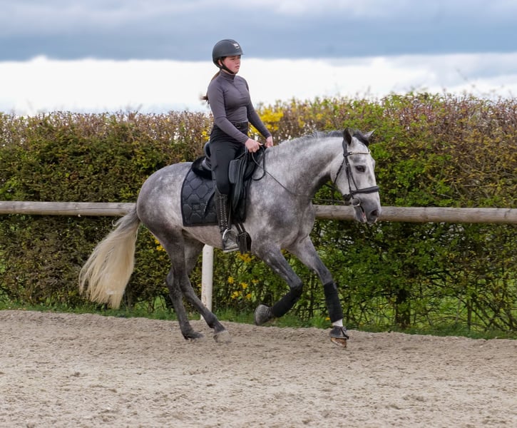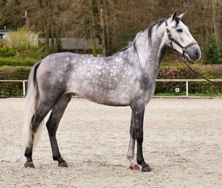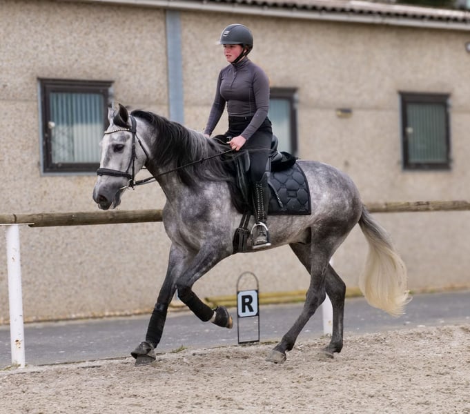 Name: Guajiro Rasse: Cruzado, Kreuzung Geschlecht: Wallach Geburtsdatum: 02.11.2022 Alter: 4 Stockmaß: 1.58m Farbe: Schimmel Abstammung: ohne Abstammungsnachweis Charakter: menschenbezogen, lernwillig, verlässlich, neugierig, intelligent, mutig, gelassen Ausbildung/Eignung: geritten, Dressur, Freizeit, Barock, Working Equitation Geländeerfahrung: zuverlässig, unerschrocken, nervenstark, alleine und in der Gruppe Gesundheit: entwurmt, geimpft, ekzemfrei, Zähne kontrolliert, osteopathisch behandelt Haltung: Box, Paddock Besonderheiten: sehr sitzbequem, schmiede und verladefromm, herdenverträglich Die genannten Eigenschaften beruhen auf unserer persönlichen Einschätzung und stellen keine zugesicherten Merkmale dar. Preis: 8500€ (Bruttopreis) Haben wir ihr Interesse geweckt? Um Ihnen einen besseren Eindruck von Guajiro zu geben, senden wir Ihnen sehr gerne sein Reitvideo zu. Selbstverständlich stehen wir Ihnen für eine ausführliche Beschreibung des Pferdes, persönliche Beratung und zur Beantwortung aller Ihrer Fragen auch telefonisch zur Verfügung. Bitte schreiben Sie uns hierfür jederzeit eine WhatsApp Nachricht, oder rufen unter folgender Telefonnummer an: +49 15119487595 Unsere Telefonzeiten sind täglich von 7:00 - 13:30 sowie ab 20:00Uhr. Wir freuen uns über Ihre Kontaktaufnahme! Eine klinische oder Röntgenologische Ankaufsuntersuchung kann gerne vom Tierarzt Ihrer Wahl durchgeführt werden. Natürlich kann Guajiro sicher und komfortabel in sein neues Zuhause geliefert werden. Wir kümmern uns um alle notwendigen Vorbereitungen und den Transport, damit Ihr neues Pferd stressfrei, gut betreut, versichert und wohlbehalten im neuen Zuhause ankommt. Zurzeit präsentieren wir eine sorgfältig ausgewählte Vielfalt an Verkaufspferden. Bei uns finden Sie garantiert Ihr Traumpferd. Besuchen Sie uns auch gerne auf unserer Homepage unter: www.marvinsroyalhorses.de. Sehr geehrte Kunden, gerne stellen wir Ihnen unsere Pferde vor und führen, putzen, satteln, longieren, Bodenarbeit sowie Probereiten in der Reithalle, auf dem Platz oder im Gelände ist Ihnen möglich, um Ihr neues Familienmitglied näher kennenzulernen. Dieses kostet für ein Pferd 40€, für jedes weitere 30€ und wird beim Kauf wieder erstattet. Unsere Adresse lautet: Grube Ferdinand 50 53577 Neustadt Wied Google Maps: marvinsroyalhorses
