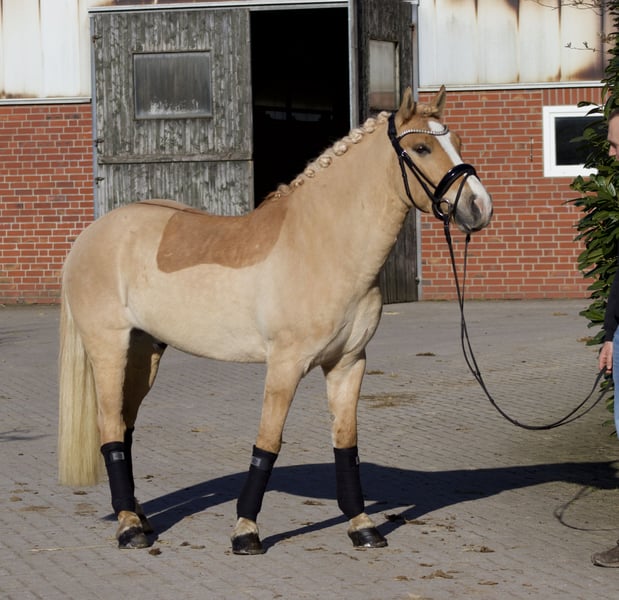 Zum Verkauf steht aktuell mein 6-jähriger Palomino Pony-Wallach „Finally Freddy“ (ca. 1,43 m) Mein wunderschöner Palomino-Wallach „Finally Freddy“ ist ein absoluter Hingucker und ein echter Goldschatz. Er überzeugt nicht nur durch seine Optik, sondern auch durch seinen klaren Kopf sowie sein freundliches und angenehmes Wesen. Freddy ist seit etwa einem Jahr gefahren und seit einem halben Jahr unter dem Sattel. Dabei zeigt er sich stets brav, lernwillig und leichtrittig. Aufgrund seines aktuellen Ausbildungsstandes ist er derzeit für Reiter auf solidem E-Niveau geeignet. Mit weiterer Förderung hat er jedoch das Potenzial, ein tolles Kinderreitpony zu werden. Er deckt auch größere Reiter gut ab – die Reiterin auf dem Video ist ca. 1,70 m groß – und eignet sich somit sehr gut als Familienpony, beispielsweise für ein Mutter-Kind-Gespann. Selbstverständlich ist Freddy: • regelmäßig geimpft • gesund • unkompliziert im täglichen Umgang • absolut robust und bei mir bisher nie krank gewesen Freddy ist ein ehrliches Pony mit sehr viel Potenzial und sucht einen passenden Menschen, der Freude daran hat, ihn weiter auszubilden und zu fördern. Bei Interesse freue ich mich über eine Nachricht! Aktuelles Video unterm Sattel: https://youtu.be/KvEXPX4Vk8I Aktuelles Video vor der Kutsche: https://youtu.be/HlyYHGKYHTQ
