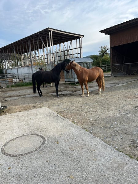 Freizeitwallach, 6.5 jährig, Cruzado Mix sucht neues liebevolles Zuhause 🍀 Standort: Wiesendangen TG (CH) Aufgrund persönlicher & familärer Umstände, suche ich für meinen Jung Wallach ein neues Zuhause. Zeus ist 6.5 jährig, 1.55m im Stockmass und läuft barhuf. Er wurde eher spät eingeritten und ist daher noch in seiner Lernphase. Er kennt die Grundbausteine unter dem Sattel wie sich vom Boden aus. Nun ist er bereit fpr die weitere Ausbildung. Zeus ist ein Cruzado, also ein Mix aus spanischen Rassen. Typengerecht hat er Power und ist auch eher sensibel. Ich würde Zeus als lieben, jedoch eigenständig denkenden Wallsch beschreiben. Er reagiert sensibel auf die Körpersprache, hinterfragt den Reiter und versicht trotzdem stets sein Bestes. Somit ist er ideal für den erfahrenen Freizeitreiter geeignet. Im Umgang ist er angenehm und weiss sich zu benehmen. Alterstypisch zeigt er sich manchmal verspielt, manchmal überdreht und manchmal frech. Er ist dem Menschen sehr zugeneigt und begrüsst seine(n) Menschen stets mit Freude. Ich habe ihn vielseitig vom Boden aus bewegt. Wir waren oft im Gelände, wie auch suf dem Platz. Geritten wurde er bis jetzt nur ca. 2mal wöchentlich. Dies jedoch abwechselnd auf dem Platz oder im Gelände. Vom Boden aus ist Zeus sehr sicher und reagiert sehr schön auf kleinste Zeichen. Auch Freiarbeit mag er gerne. Geritten ist Zeus noch etwas unsicher, da braucht er einfach noch mehr Übung und Routine. Jedoch ist er stets händelbar, wenn auch mal kleine Hüpfer kommen. Zeus kennt sowohl Offenstallhaltung, wie auch Boxenhaltung. Er ist unkompliziert in der Haltung und passt sich rasch an neue Umgebungen an. Er ist eher mittel im Rang, daher sollte eine gute Eingliederung in eine Gruppenhaltung erfolgen. Ansunsten ist er kerngesund und ein munteres Kerlchen. Er kann gerne jederzeit besucht werden, probegeritten und kennengelernt werden. Aufgrund meiner familären Umstände muss ich für ihn leider ein neues Zuhause suchen. Dies mache ich mit Tränen in den Augen. Daher ist mir ein gutes Zuhause sehr wichtig. Es gilt daher Platz vor Preis!