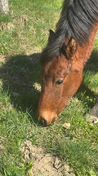 • Lebt aktuell ganzjähriger Weidehaltung mit Mama, Papa, ihrer „Tante“ und deren Fohlen.
