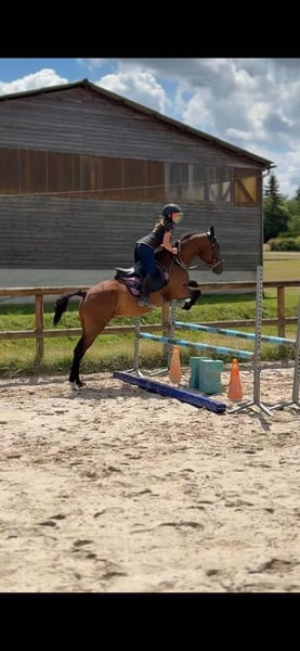 Allow me to introduce Lucky. An adorable 4-year-old curly gelding. Extremely curly, very affectionate, and incredibly gentle. Ridden by children, he would make an excellent family horse. He is versatile (show jumping, dressage, cross-country, hacking) and has already completed a small jumping course. He rides alone and in company on hacks. He lives both in the field and in a stable, born and raised in a herd. He is currently barefoot and has very good hooves.