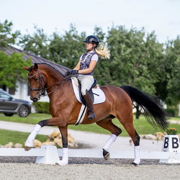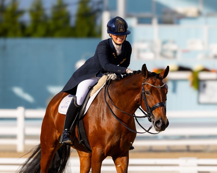 Bonnie ist eine atemberaubende, auffällige Stute mit außergewöhnlicher dänischer Abstammung. Elegant und leichtfüßig, verfügt sie über drei ausdrucksvolle, schöne Gangarten. Suchen Sie ein sicheres, zuverlässiges Pferd, das Sie ohne Zögern selbstbewusst die Mittellinie bei einem CDI entlang führt? Sind Sie müde von Pferden, die unter dem Druck von Turnieren enttäuschen? BONNIE ist Ihre Stute! • Turnierniveau: PSG-Siegerin, erfolgreich in CDI-Junge-Reiter-Wettbewerben, auf dem Weg zu U25 • Ausbildungs-Highlights: Unkomplizierte Piaffe und Passage, bereit für den Spitzenwettbewerb Immer konstant, immer willig, glänzt Bonnie vom entspannten Ausreiten im Wald bis zum Rampenlicht prestigeträchtiger Shows wie Dressage at Devon (September 2025). Sie ist ein unglaublicher Vertrauensbuilder für Reiter jeden Niveaus. Mit ihrem Schulmeister-Temperament ist sie leicht zu sitzen und ein Vergnügen zu reiten - ein echtes Damenpferd. Standort: New Jersey, USA (verfügbar bis zum 1. Dezember 2025) Gesundheits- und Tierarztinformationen: Vollständiger Röntgenbefund und tierärztliche Untersuchung verfügbar.