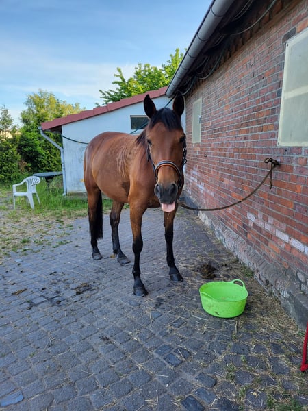 I am offering my loving and honest Traber mare, Dajana, for further training as a leisure horse or companion, as she is very social. I purchased her directly from the breeder at the end of October 2021. She has competed in a few races there. Since she enjoys galloping more, she was sold as a leisure horse. Dajana is very social, curious, attentive, eager to learn, and clear-minded. She is also sensitive and cautious. Dajana has a wonderful character. She is familiar with both box stall and open stable management. About three years ago, she had a fetlock joint inflammation, which has fully healed. Dajana is shod in front. I wish for her a wonderful new home where she will be appreciated and loved. Dajana has been gently backed in walk and trot, which she took very kindly. Her canter training has not been actively developed under saddle. For the past year, she has not been worked much—only groomed, pampered, and walked out. No rider has been on her during this time. Dajana will not be sold to dealers or riding schools. An AQ (pre-purchase exam) can be arranged upon request and at the buyer’s expense. If you are genuinely interested, please feel free to contact me. Dajana is for sale because my personal circumstances have changed.