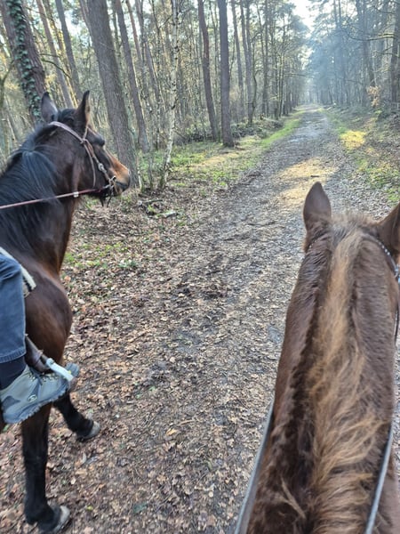 Hele lieve 16jarige draver. Vanwege echtscheiding zoek ik een ander huisje voor haar. Ze zet geen stap verkeerd een klein kind kan zo erop springen. Wandelen doet ze ook netjes. Nergens bang voor op buitenrit.