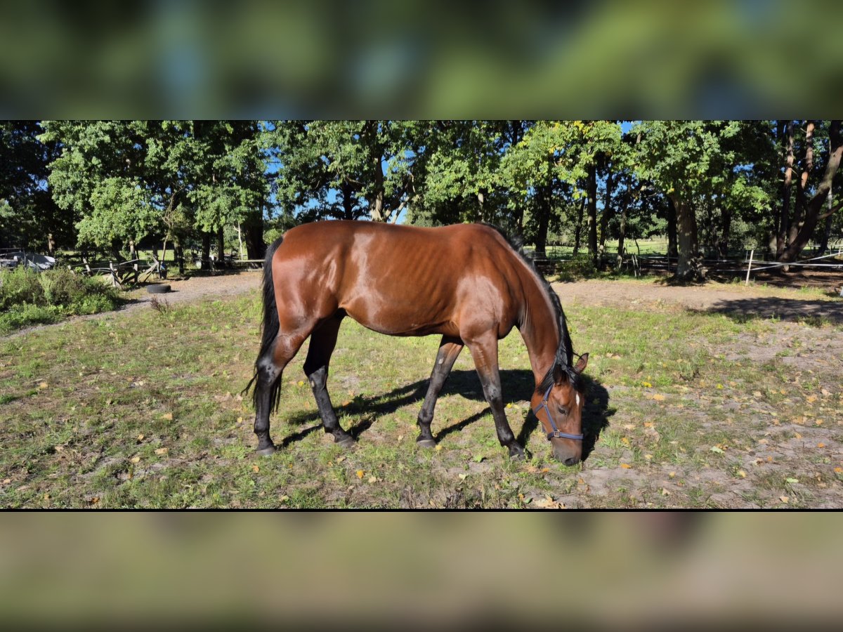 Ich verkaufe meinen 8 jährigen Traberwallach, weil ich ihm zeitlich nicht mehr gerecht werden kann und er es verdient hat weiter gefördert, gefordert und ausgebildet zu werden. Stockmass 165 cm, braun, weißer Fleck auf der Stirn. Er hat ein großes Herz, und hat man dieses ersteinmal erobert, macht er alles für dich. Um seine Qualitäten voll auszuschöpfen, benötigt er einen souveränen Menschen der ihm Ruhe und Sicherheit vermittelt. Dieser Text ist ehrlich formuliert, da ich mir für Ostwind ein für immer zuhause wünsche. Er ist seit 1,5 Jahren Freizeitpferd, gut ausgebildet an der Lounge, Doppellounge, Bodenarbeit, Stangenarbeit. Sowohl Halle und auch draußen. Er liebt Freispringen. Er ist wahnsinnig gelehrig, begreift schnell, setzt dieses sofort um und ruft es dann jederzeit auch wieder ab . Er geht gerne alleine, aber auch in der Gruppe ins Gelände. Nicht Herdengebunden. Auf ungewohnte Geräusche reagiert er manchmal ein bisschen empfindlich. Er lebt in einem Vollpensionsstall, tagsüber draußen, Nachts in der Box. Er steht in einer größeren Wallachgruppe, ist gut sozialisiert, spielt und rangelt auch mal mit seinen Kumpels. Ist aber ehr Rangniedrig. Gesund, gerade geimpft, Zähne gemacht, regelmäßig beim Hufschmied. Artig beim Verladen. Er sollte nur an einen erfahrenen Reiter gehen. Probereiten natürlich möglich.