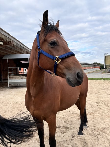 Hallo du! ich bin Enjo – ein 9-jähriger Traber-Wallach – 1,63m groß und ich suche meinen Herzensmenschen. Vielleicht ja genau dich? Auch wenn ich ein Traber bin, bin ich nie Trabrennen gegangen. Die Rennbahn ist also nichts für mich – und ehrlich gesagt habe ich daran auch gar kein Interesse. Viel lieber bin ich gemütlich unterwegs, genieße die Natur und erkunde als Freizeit- und Geländepferd die Welt. Genau dort fühle ich mich am wohlsten – im Wald, auf Feldwegen und bei entspannten Ausritten. Mit meinen 9 Jahren bin ich im besten Alter: kein Fohlen mehr, aber voller Energie für viele gemeinsame Jahre. Ich bin freundlich, ehrlich und wünsche mir einen Menschen, der Lust auf eine partnerschaftliche Zusammenarbeit hat. Ein kleines Extra bringe ich auch mit: Ich habe eine Hernie, die mich im Alltag nicht stört oder einschränkt. Allerdings bin ich dadurch kein Springpferd – hohe Hindernisse sind einfach nicht mein Ding. Dafür begleite ich dich zuverlässig im Freizeitbereich. Außerdem habe ich ein bisschen Magenprobleme. Deshalb vertrage ich nur Heu und keine Heulage. Für mich wäre es ideal, wenn ich 24/7 Zugang zu Heu hätte, damit mein Magen glücklich bleibt. Ein Offenstall wäre ein Traum für mich – alternativ wäre auch tagsüber Weidegang und abends eine Box möglich. Hauptsache, ich darf viel draußen sein und regelmäßig Heu knabbern. Im Galopp fällt es mir noch etwas schwer – da brauche ich einen geduldigen Menschen, der mir Zeit gibt und mich liebevoll unterstützt. Mit Ruhe und Vertrauen lerne ich aber gerne dazu und gebe mir große Mühe. Vorne trage ich Eisen, weil ich dort etwas fühlig bin. Damit komme ich aber gut zurecht und bin so angenehm zu reiten. Aktuell stehe ich in 49163 Bohmte und kann dort nach Absprache gerne kennengelernt werden. Ich freue mich, wenn du vorbeikommst und wir schauen, ob die Chemie zwischen uns stimmt. Und das Wichtigste zum Schluss: Platz vor Preis. Mein neues Zuhause soll wirklich passen – liebevolle Hände, Geduld und ein schönes Umfeld sind wichtiger als alles andere. Wenn du also ein treues Freizeitpferd suchst, das mit dir entspannt durchs Gelände zieht und mit dir gemeinsam wachsen möchte, dann könnte ich genau dein Enjo sein. Ich freue mich auf dich!