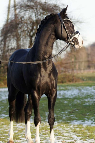 Ein absoluter Edelmann in begehrter Rappfarbe. Seine brillante Typausprägung mit wunderschönem Ausdruck, seine Langbeinigkeit sowie Korrektheit des Körpers zeichnen ihn aus. Bei seinen Auftritten zieht er die Zuschauer in seinen Bann. Bei den Ausnahmequalitäten in den Grundgangarten lässt sich schnell erkennen, dass sich hier ein Youngster mit Zukunft präsentiert. Der Vater Brisbane selbst ist ein wahrer Blickfang, viel Typ mit dem dazugehörigen hochkarätigen Bewegungsqualitäten, hocherfolgreich im Sport eingesetzt und mit einer top HLP. Brisbane‘s Vater Belissimo M hat mittlerweile einen hohen züchterischen Stellenwert und trägt dies auch in seinem Namenszusatz NRW zur Geltung. Er selbst hat eine musterschülergleiche Eigenleistung vorzuzeigen:Auktionsspitzenpferd, Rekord Hengstprüfungssieger, Bundeschampion, Finalist bei der Weltmeisterschaft der Dressurpferde und mittlerweile im großen Sport zu Haus. Unzählige Nachkommen von ihm bereichern die Auktionen, Körungen, Turniere und Championate. Die Mutter Brisbanes, Laura Vandini, stammt ab vom Hannoveraner Siegerhengst Londonderry. Seine zahlreichen Nachkommen machen seinem Namen alle Ehre. Er selbst ist mittlerweile bis zur S-Dressur erfolgreich und gibt dies auch an seine Kinder weiter. Der Urgroßvater von Brisbane ist mittlerweile in vielen Hannoveraner Linien zu finden. Aus diesem Stutenstamm entspringen außerdem viele erfolgreiche Dressurpferde wie: Galapagos I und II (PB) , Amadeus (S-Dr) , Eric 10 (S-Dr), Lucian ( S-Dr) uvm. Blackburns Mutter legte eine Stutenleistungsprüfung mit 8,03 ab mit top Rittigkeitsnoten. Des Weiteren kommen aus dem Mutterstamm zahlreiche Sportpferde hervor die bis zur Klasse S im Dressur- und Springsport erfolgreich sind. Aus dem direktem Mutterstamm kommt der Hengst Dacapo – mit über 127 Platzierungen bis Dr. Kl. S – und der Hengst Dimitz. Erfolge 2019: Siege und Platzierungen in Dressurpferde A 2018: Siege und Platzierungen in Reitpferdeprüfungen und Dressurpferde A HlP 50 Tage Test erfolgreich abgeschlossen . Somit auch für die Warmblutzucht zugelassen wie auch für die Reitponyzucht.