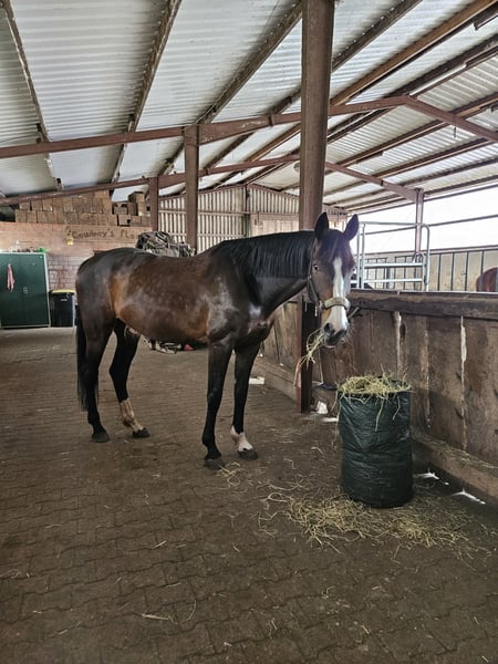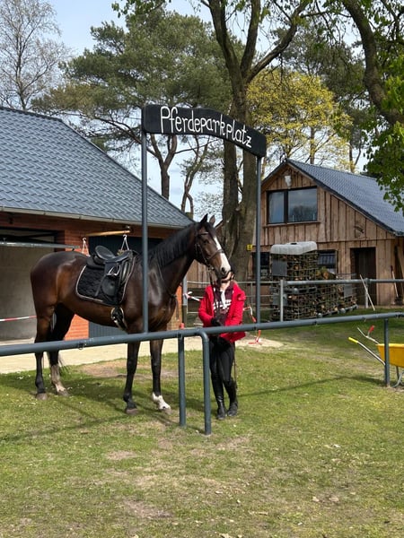 Size: 16.1 hh Born: 2016 Pedigree: see pictures... Bella is a stunning bay mare with two white stockings on her left front leg and a distinctive star – she is truly eye-catching. In handling, Bella exhibits typical mare behavior. She requires a clear, consistent handler who appreciates her personality. Under saddle, she impresses with her honest, brave nature and pleasant rideability. She also shows great potential over fences. She is comfortable riding both alone and in a group, always easy to handle. She loves jumping but has not been extensively trained in it... She is essentially a rough diamond in the jumping discipline. ✅ Suitable for competitions, leisure riding, and trail riding ✅ Well-behaved under saddle During the day, she grazes in the pasture and at night, she is stabled. She is also familiar with loose-box and pasture management. Especially nice, she is not a kicker. Bella is looking for an experienced horse person. She proves to be reliable and willing to work. She needs to be challenged, which is why I am selling her... I do not meet her demands. Additional details: • Recent health check (AKU) from November 2024 • Vaccinated and dewormed • Osteo and dental treatment completed • Blood test from December 2025 with no findings • Barefoot Bella is not suitable for beginner riders. 📍 Location: Lathen 📞 Contact: 0178-13 609 62 I respond most quickly via WhatsApp. For a trial ride, I charge €25 to help prevent rearing tourism, which will be deducted from the purchase price. She is also available for sale to dealers and riding schools.