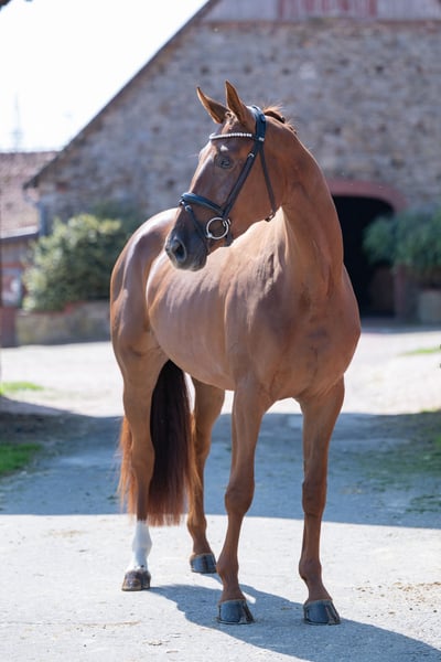 ⚜️zu verkaufen ⚜️ * Stute * 2022 * ca 1,69 m * Revolution/ Descolari * Röntgenbilder vorhanden Qualitätsvolle Nachwuchs-Dressurstute zu verkaufen. Sehr brav im Umgang sowie unter dem Sattel, arbeitsfreudig und angenehm rittig mit genügend Go. Sie kennt das Reiten in der Halle, auf dem Platz sowie im Gelände und zeigt sich dabei stets unkompliziert. Ein tolles Pferd für ambitionierte Reiter, die ein motiviertes Nachwuchspferd suchen. Kleines Manko: Sie koppt gelegentlich, was sie jedoch weder gesundheitlich noch in ihrer Leistungsfähigkeit einschränkt. Wer diese junge Stute kennen lernen möchte, meldet sich gerne unter folgender Telefonnummer 0173 9954104 📞