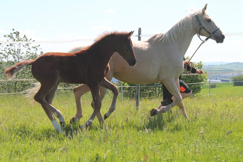 Shine hat bereits 3 Prämien Fohlen (s.Bilder) aktuell hat sie ein SF von Vald’Aran bei Fuß und ist besamt von Evermore für das nächste Jahr. Sie selbst ist VerbPr Stute. Aktuell eingetragen Stutbuch l des DSP