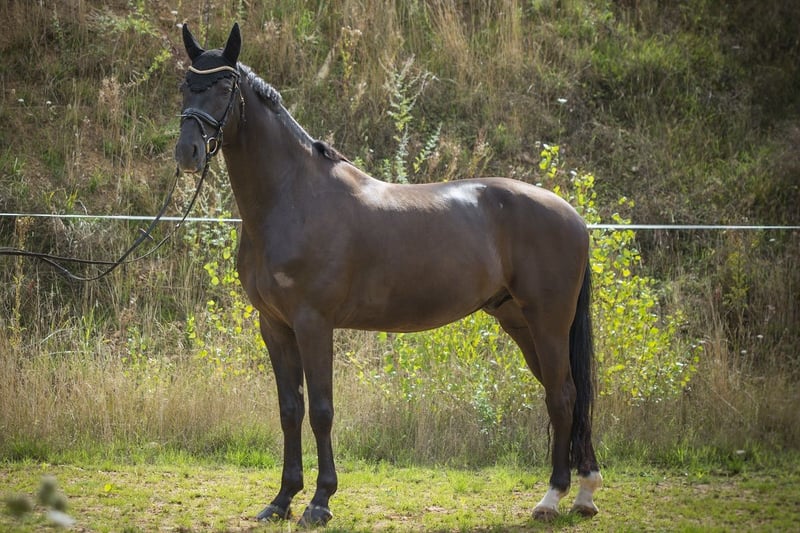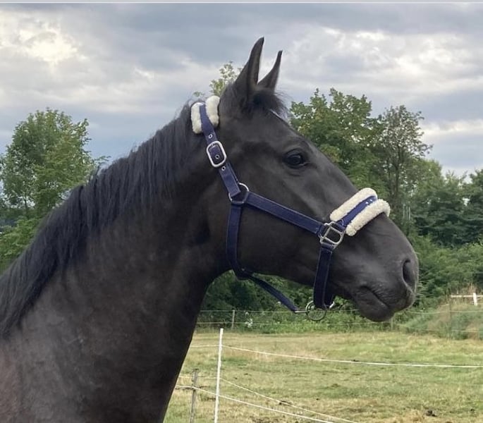 Aprendizaje y curioso compañero de deporte, que disfruta ser montado. También se adapta fácilmente a diferentes jinetes y jineteas (incluidos niños en riendas). Gracias a su excelente conformación general y a su talento para los movimientos laterales, se le suele ver principalmente en el círculo de doma. Sin embargo, a Legolas también le gusta saltar, hacer paseos en el campo o trabajar en el suelo. Criado cuidadosamente en nuestra finca, iniciado en la mano y actualmente entrenado hasta la categoría de doma M. Ha competido en categorías L y M de doma. Actualmente, está siendo entrenado por una jinete de 17 años en colaboración con su entrenadora, que ha tenido éxito hasta la categoría S**. Por favor, envíe mensajes de texto o de voz únicamente al teléfono 0171…. Le asesoramos con competencia y dedicación durante una visita con prueba de monta.