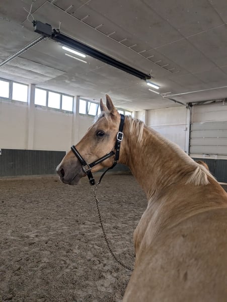 Na sprzedaż jest obiecujący młody ogier, urodzony w 2022 roku. Ten niemiecki koń jeździecki imponuje nie tylko swoją elegancką sylwetką jako palomino, ale także doskonałym potencjałem w skokach. Już jako źrebak był nagradzany. Jego zrównoważony temperament i chęć do nauki czynią go idealnym partnerem dla ambitnych jeźdźców. Potrafi się zaprezentować i w obcowaniu jest po prostu marzeniem. Zna już załadunek i jest przy tym bardzo grzeczny. Mały promyk słońca. Interesujący zarówno do ujeżdżenia, jak i skoków lub wszechstronności. (Półrodzeństwo w różnych dyscyplinach). Zdjęcia tych koni mogą zostać wysłane.
